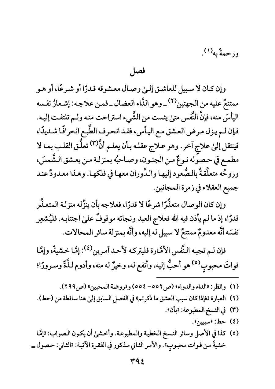 (¬١) وانظر: «الداء والدواء» (ص ٥٥٢ - ٥٥٤) و «روضة المحبين» (ص ٢٩٩).