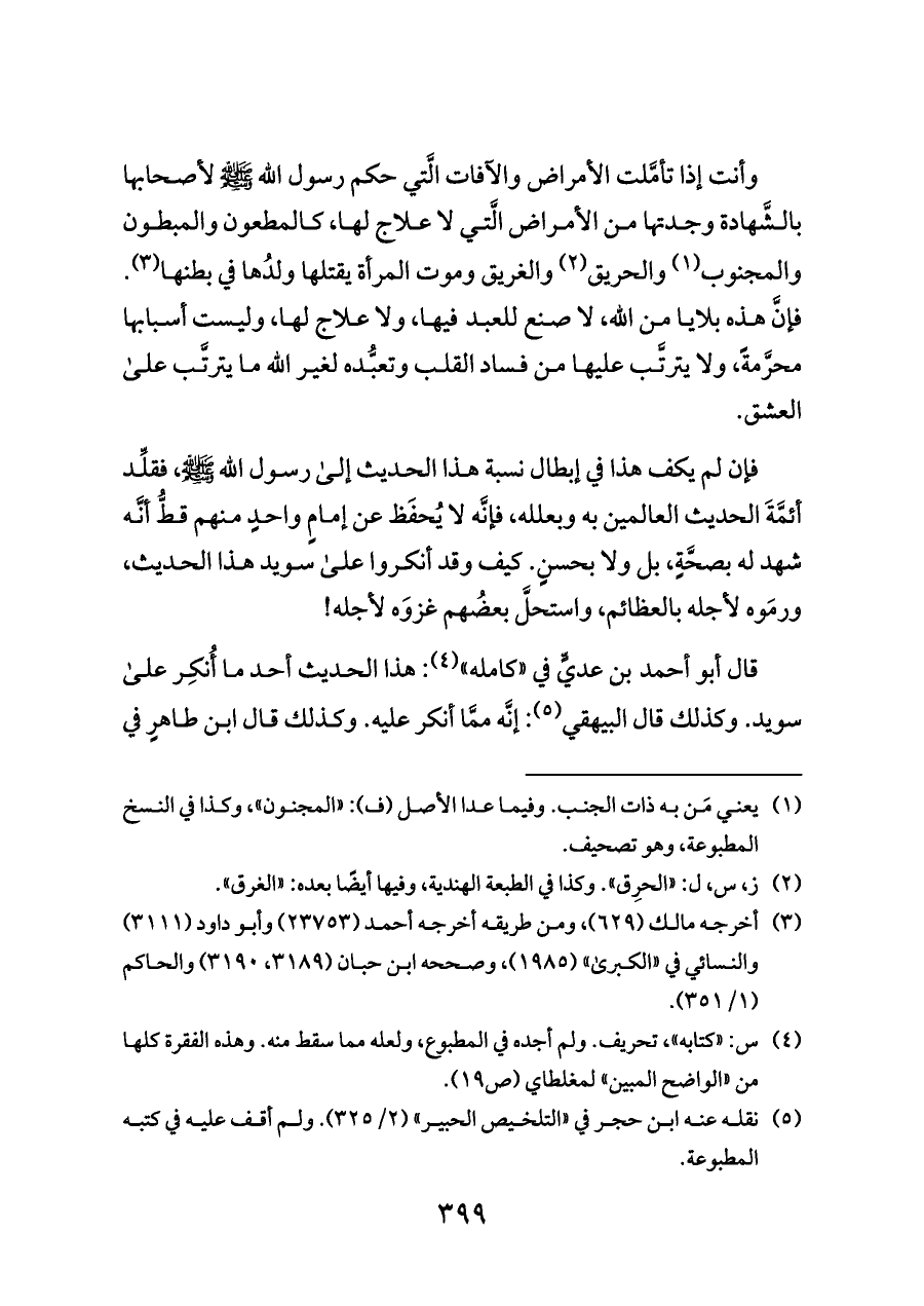 قال أبو أحمد بن عديٍّ في «كامله» (¬٤): هذا الحديث أحد ما أُنكِر على سويد. وكذلك قال البيهقي (¬٥): إنَّه ممَّا أنكر عليه. وكذلك قال ابن طاهرٍ في
