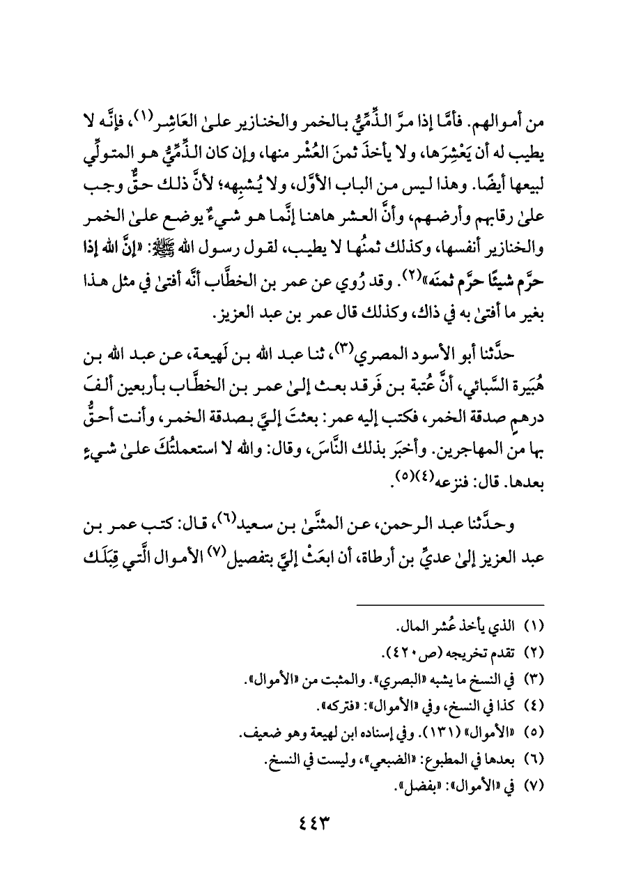 (¬٣) في النسخ ما يشبه «البصري». والمثبت من «الأموال».