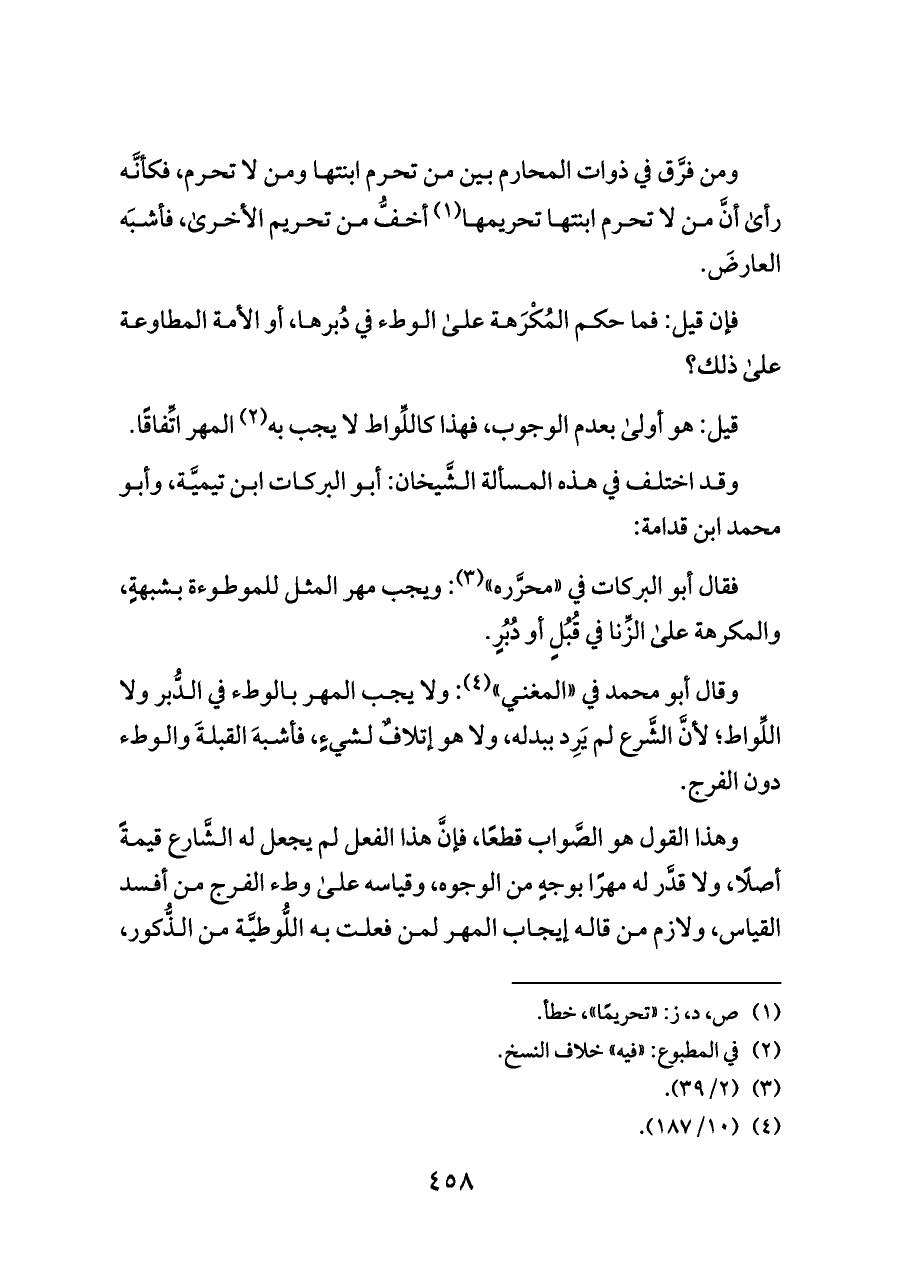 فقال أبو البركات في «محرَّره» (¬٣): ويجب مهر المثل للموطوءة بشبهةٍ، والمكرهة على الزِّنا في قُبُلٍ أو دُبُرٍ.