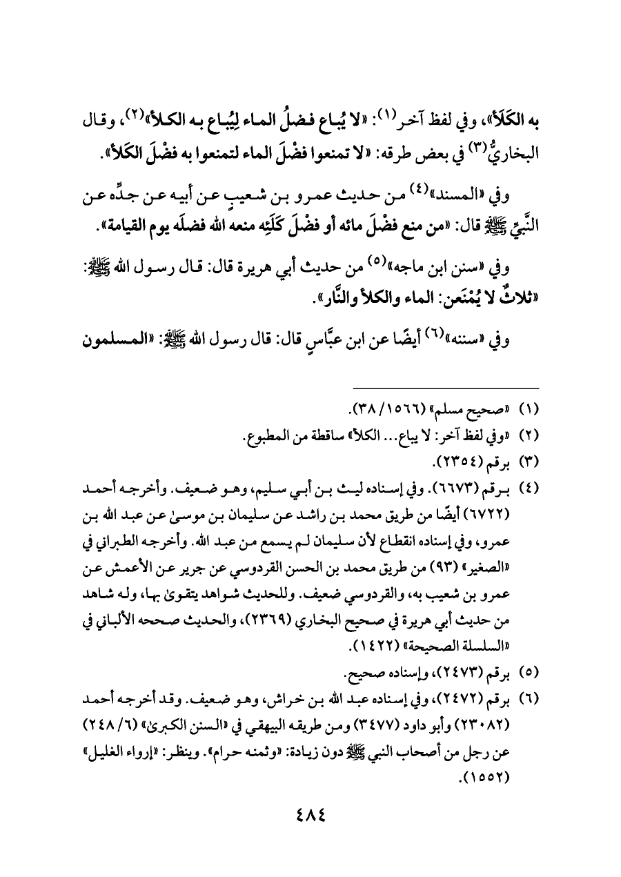 (¬٢) «وفي لفظ آخر: لا يباع ... الكلأ» ساقطة من المطبوع.