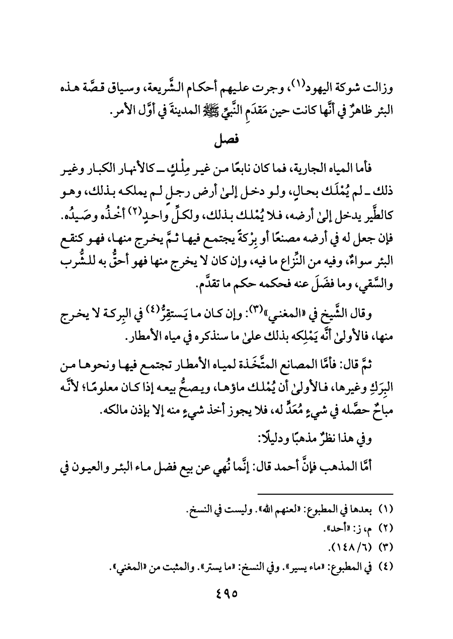 أمَّا المذهب فإنَّ أحمد قال: إنَّما نُهي عن بيع فضل ماء البئر والعيون في