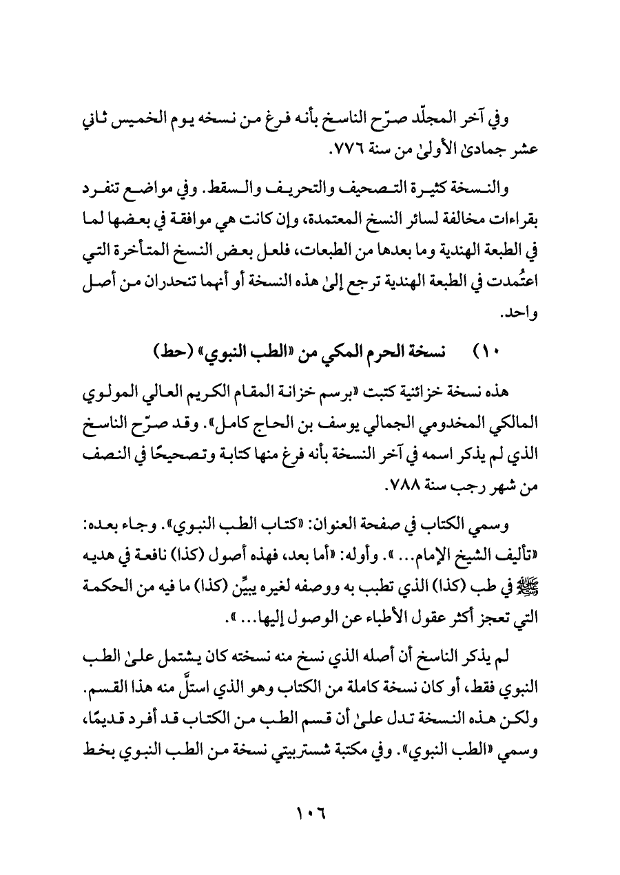 ١٠) نسخة الحرم المكي من «الطب النبوي» (حط)