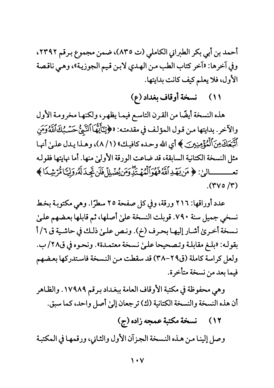 ١١) نسخة أوقاف بغداد (ع)
