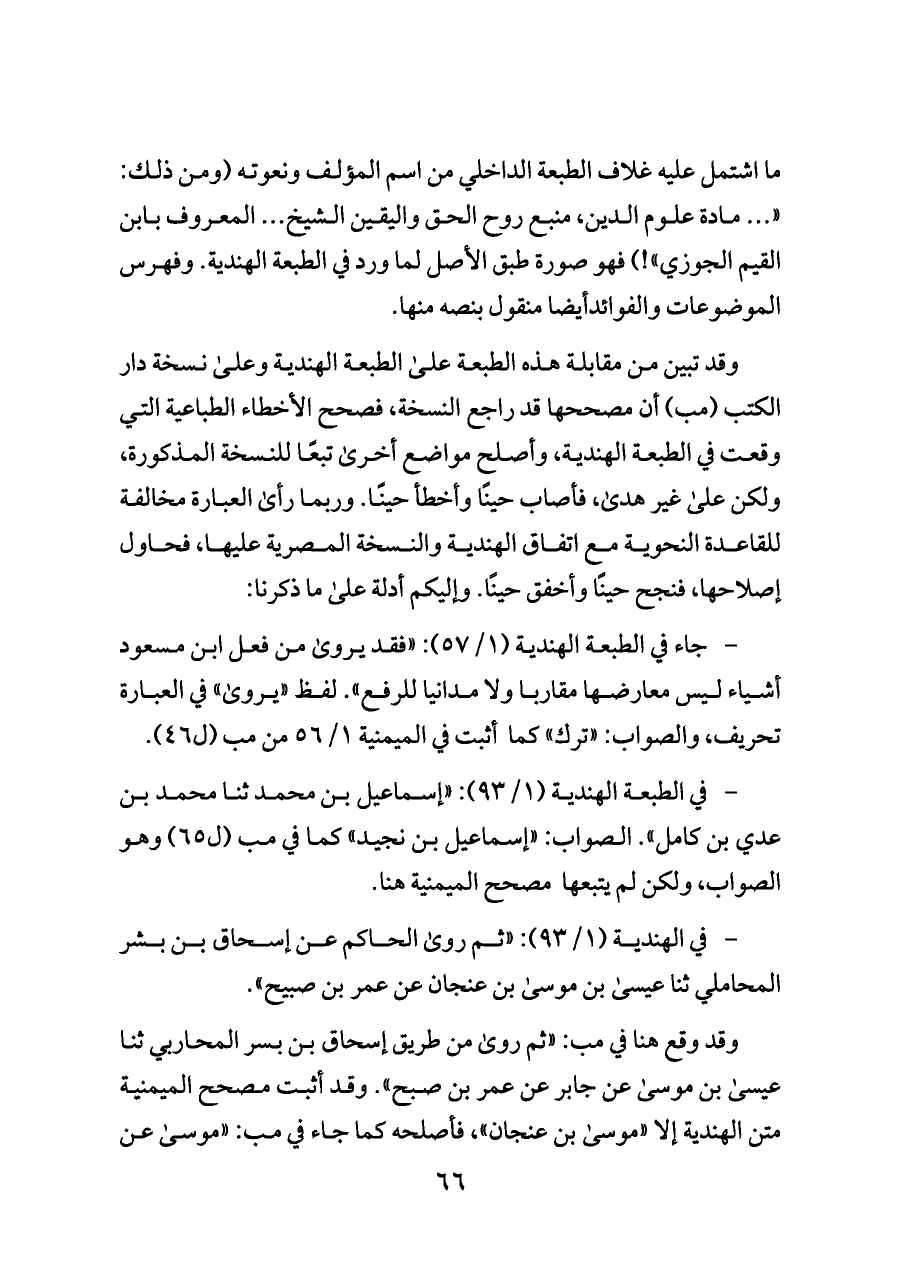 - في الطبعة الهندية (١/ ٩٣): «إسماعيل بن محمد ثنا محمد بن عدي بن كامل». الصواب: «إسماعيل بن نجيد» كما في مب (ل ٦٥) وهو الصواب، ولكن لم يتبعها مصحح الميمنية هنا.