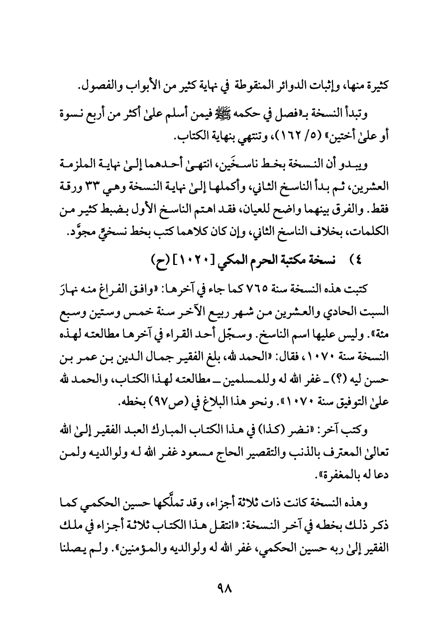 ٤) نسخة مكتبة الحرم المكي [١٠٢٠] (ح)