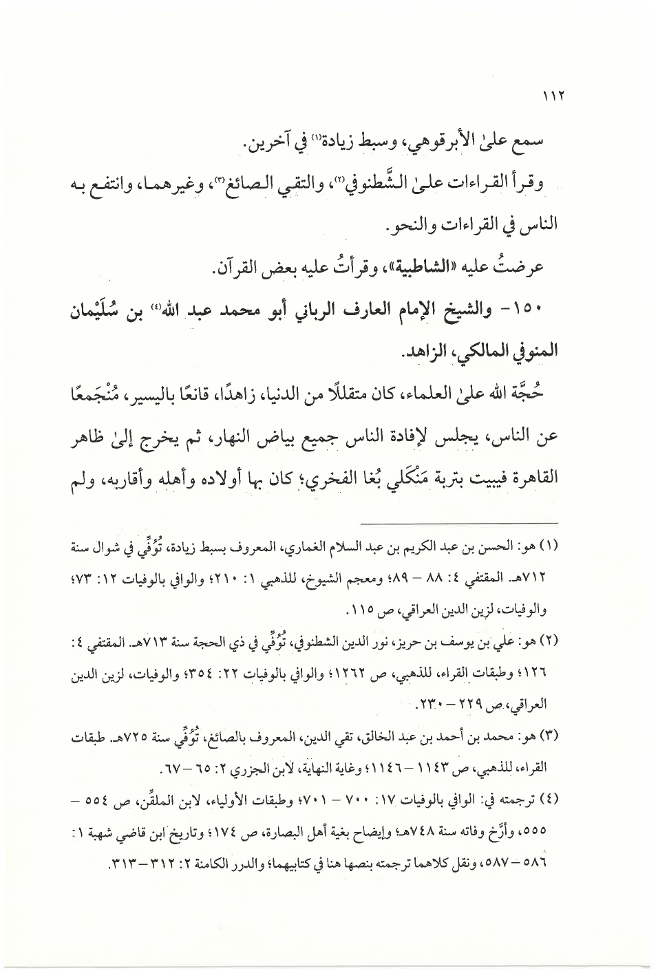 ١٥٠ - والشيخ الإمام العارف الرَّبَّاني أبو محمد عبد الله (¬٤) بن سُلَيْمَان المنوفي المالكي، الزاهد.