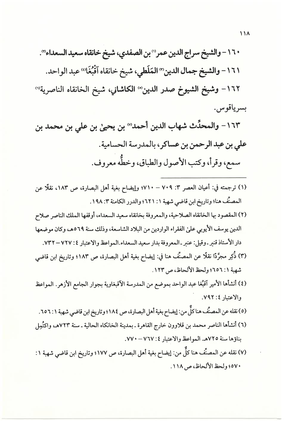 (¬٢) المقصود بها الخانقاه الصالحية، والمعروفة بخانقاه سعيد السعداء، أوقفها الملك الناصر صلاح الدين يوسف الأيوبي على الفقراء الواردين من البلاد الشاسعة، وذلك سنة ٥٦٩ هـ، وكان موضعها دار الأستاذ قمبر- وقيل: عنبر- المعروفة بدار سعيد السعداء. المواعظ والاعتبار ٤: ٧٢٧ - ٧٣٢.