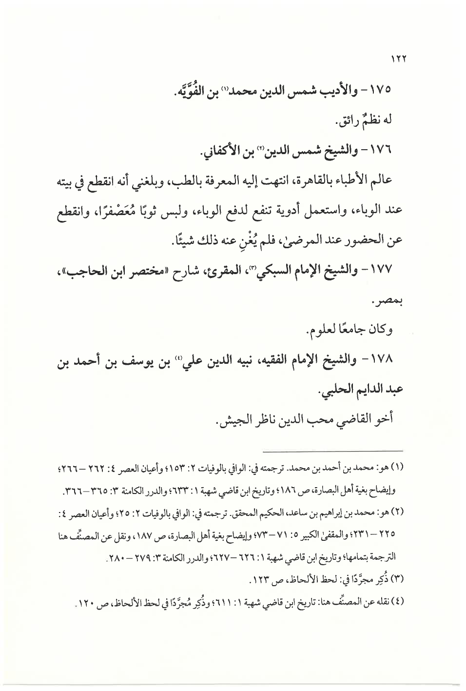 (¬٤) نقله عن المصنِّف هنا: تاريخ ابن قاضي شهبة ١: ٦١١؛ وذُكِرَ مجرَّدًا في لحظ الألحاظ، ص ١٢٠.