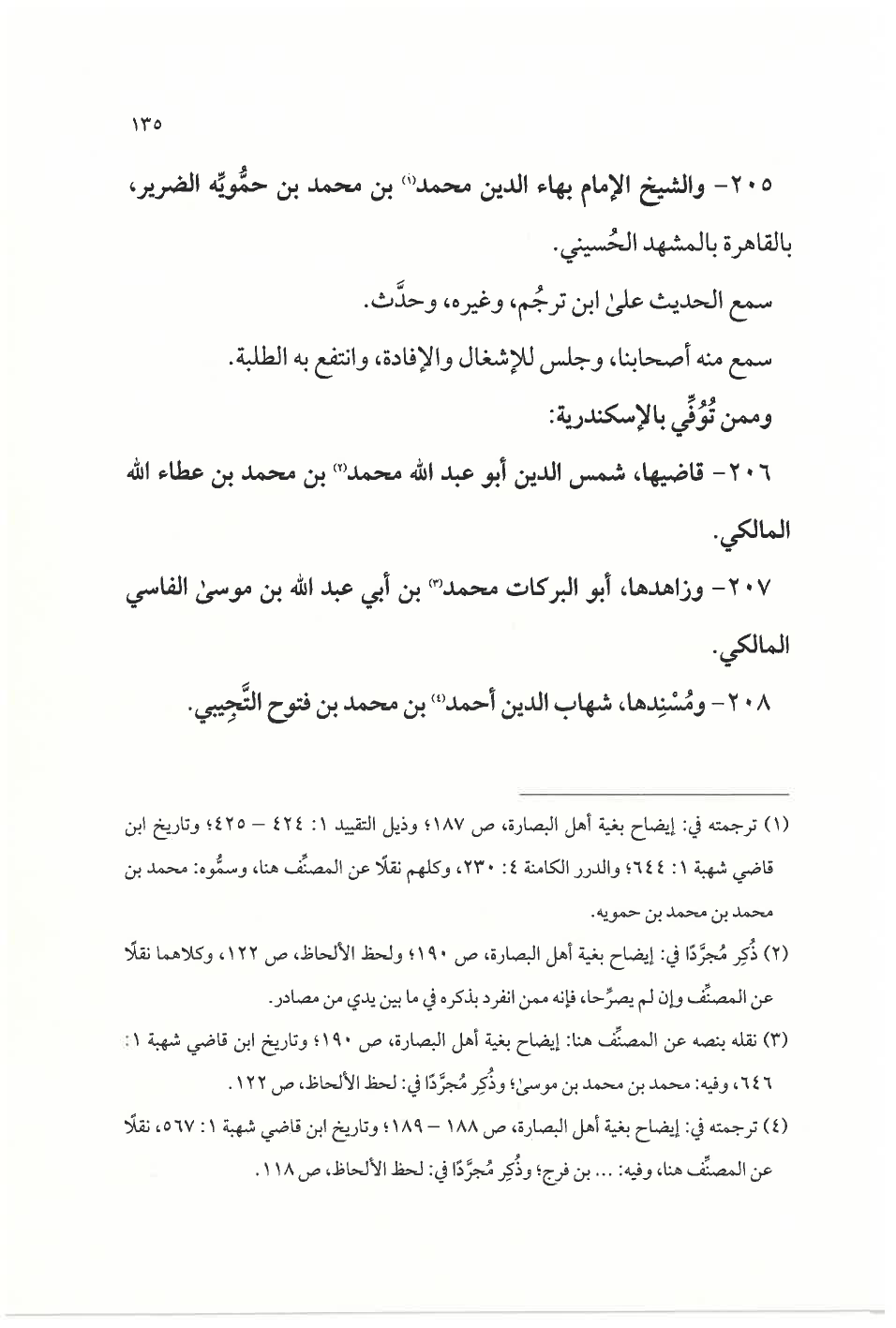(¬١) ترجمته في: إيضاح بغية أهل البصارة، ص ١٨٧؛ وذيل التقييد ١: ٤٢٤ - ٤٢٥؛ وتاريخ ابن قاضي شهبة ١: ٦٤٤؛ والدرر الكامنة ٤: ٢٣٠، وكلهم نقلًا عن المصنِّف هنا، وسمُّوه: محمد بن محمد بن محمد بن حموية.