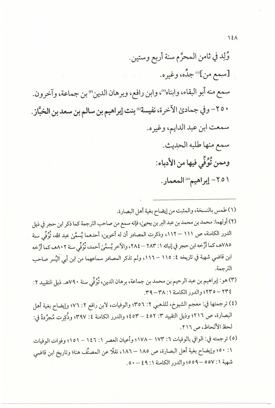 (¬٥) ترجمته في: الوافي بالوفيات ٦: ١٧٣ - ١٧٨؛ وأعيان العصر ١: ١٤٦ - ١٥١؛ وفوات الوفيات ١: ٥٠؛ وإيضاح بغية أهل البصارة، ص ١٨٥ - ١٨٦، نقلًا عن المصنِّف هنا؛ وتاريخ ابن قاضي شهبة ١: ٥٥٧ - ٥٥٩؛ والدرر الكامنة ١: ٤٩ - ٥٠.