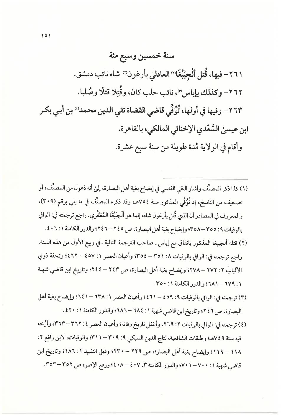 (¬٤) ترجمته في: الوافي بالوفيات ٢: ٢٦٩، وأغفل تاريخ وفاته؛ وأعيان العصر ٤: ٣٦٢ - ٣٦٣، وأرَّخه فيه سنة ٧٤٩ هـ؛ وطبقات الشافعية، لتاج الدين السبكي ٩: ٣٠٩ - ٣١١؛ والوفيات، لابن رافع ٢: ١١٨ - ١١٩؛ وإيضاح بغية أهل البصارة، ص ٢٢٩ - ٢٣٠؛ وذيل التقييد ١: ١٨٦؛ وتاريخ ابن قاضي شهبة ١: ٧٠٠ - ٧٠١؛ والدرر الكامنة ٣: ٤٠٧ - ٤٠٨؛ ورفع الإصر، ص ٣٥٢ - ٣٥٣.