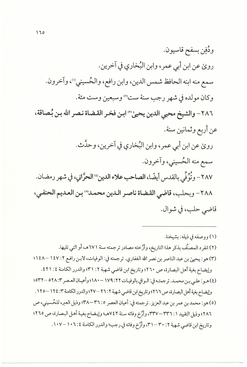 ٢٨٦ - والشيخ محيي الدين يحيى (¬٣) ابن فخر القضاة نصر الله بن بُصاقة، عن أربع وثمانين سنة.