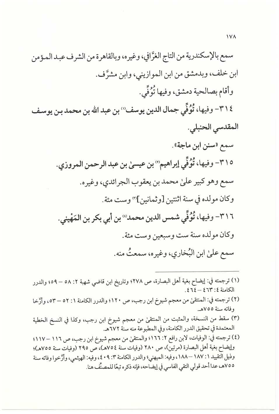 (¬٤) ترجمته في: الوفيات، لابن رافع ٢: ١٦٦؛ والمُنتَقَى من معجم شيوخ ابن رجب، ص ١١٦ - ١١٧؛ وإيضاح بغية أهل البصارة (مرتين)، ص ٢٨٠ (وفيات سنة ٧٥٤ هـ)، ص ٢٩٥ (وفيات سنة ٧٥٥ هـ)؛ وذيل التقييد ١: ١٨٧ - ١٨٨، وفيه: الميهني؛ والدرر الكامنة ٣: ٤٠٩، وفيه: الهيثمي، وأرَّخوا وفاته سنة ٧٥٥ هـ، عدا أحد قولي التقي الفاسي في إيضاحه، فإنه ذكره تبعًا للمصنف هنا.