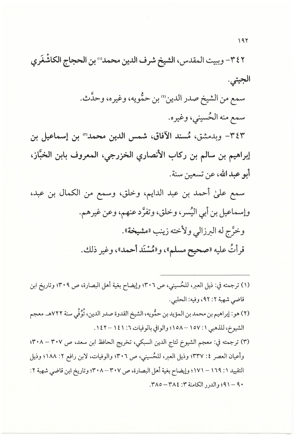 (¬٣) ترجمته في: معجم الشيوخ لتاج الدين السبكي، تخريج الحافظ ابن سعد، ص ٣٠٧ - ٣٠٨؛ وأعيان العصر ٤: ٣٣٧؛ وذيل العبر، للحسيني، ص ٣٠٦؛ والوفيات، لابن رافع ٢: ١٨٨؛ وذيل التقييد ١: ١٦٩ - ١٧١؛ وإيضاح بغية أهل البصارة، ص ٣٠٧ - ٣٠٨؛ وتاريخ ابن قاضي شهبة ٢: ٩٠ - ٩١؛ والدرر الكامنة ٣: ٣٨٤ - ٣٨٥.