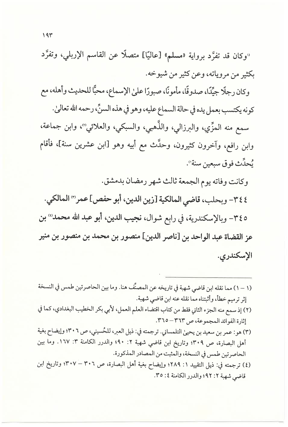 (¬١) وكان قد تفرَّد برواية «مسلم» [عاليًا] متصلًا عن القاسم الإربلي، وتفرَّد بكثير من مروياته، وعن كثير من شيوخه.