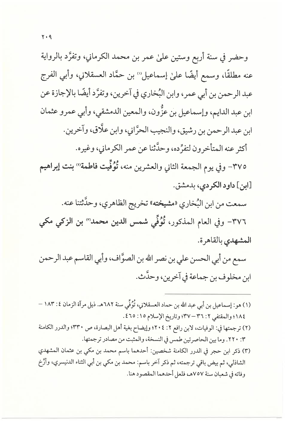 (¬٣) ذكر ابن حجر في الدرر الكامنة شخصين: أحدهما باسم محمد بن مكي بن عثمان المهشدي الشاذلي، ثم بيض باقي ترجمته، ثم ذكر آخر باسم: محمد بن مكي بن أبي الثناء الدنيسري، وأرَّخ وفاته في شعبان سنة ٧٥٧ هـ، فلعل أحدهما المقصود هنا.