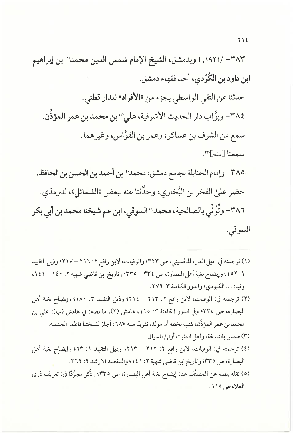 ٣٨٣ - / [١٩٢ و] وبدمشق، الشيخ الإمام شمس الدين محمد (¬١) بن إبراهيم بن داود بن الكُرْدي، أحد فقهاء دمشق.