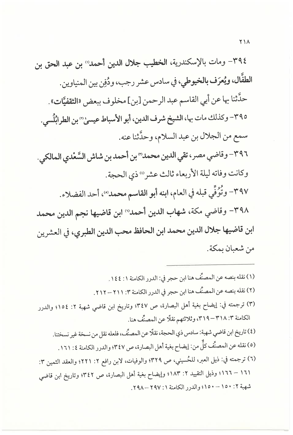 ٣٩٨ - وقاضي مكة، شهاب الدين أحمد (¬٦) ابن قاضيها نجم الدين محمد ابن قاضيها جلال الدين محمد ابن الحافظ محب الدين الطبري، في العشرين من شعبان بمكة.