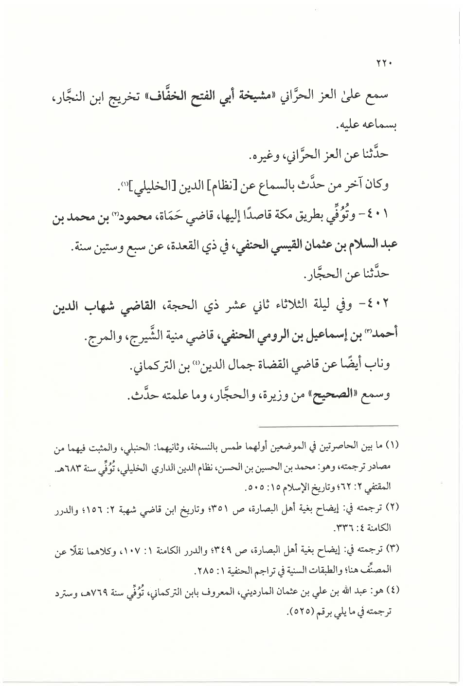 ٤٠١ - وتُوُفِّي بطريق مكة قاصدًا إليها، قاضي حماة، محمود (¬٢) بن محمد بن عبد السلام بن عثمان القيسي الحنفي، في ذي القعدة، عن سبع وستين سنة.