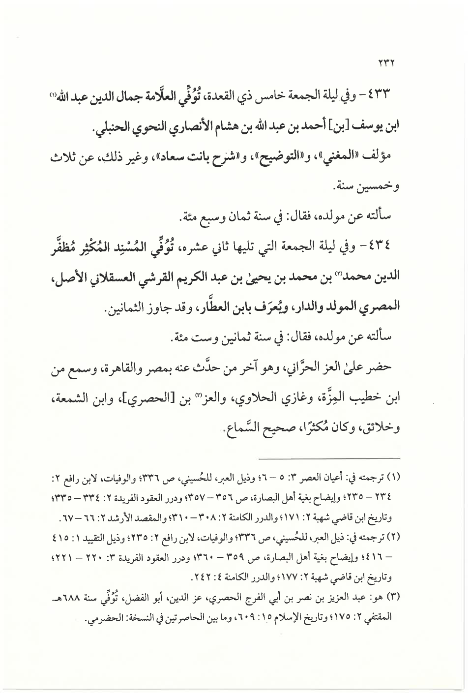 ٤٣٣ - وفي ليلة الجمعة خامس ذي القعدة، تُوُفِّي العلَّامة جمال الدين عبد الله (¬١) بن يوسف [بن] أحمد بن عبد الله بن هشام الأنصاري النحوي الحنبلي.
