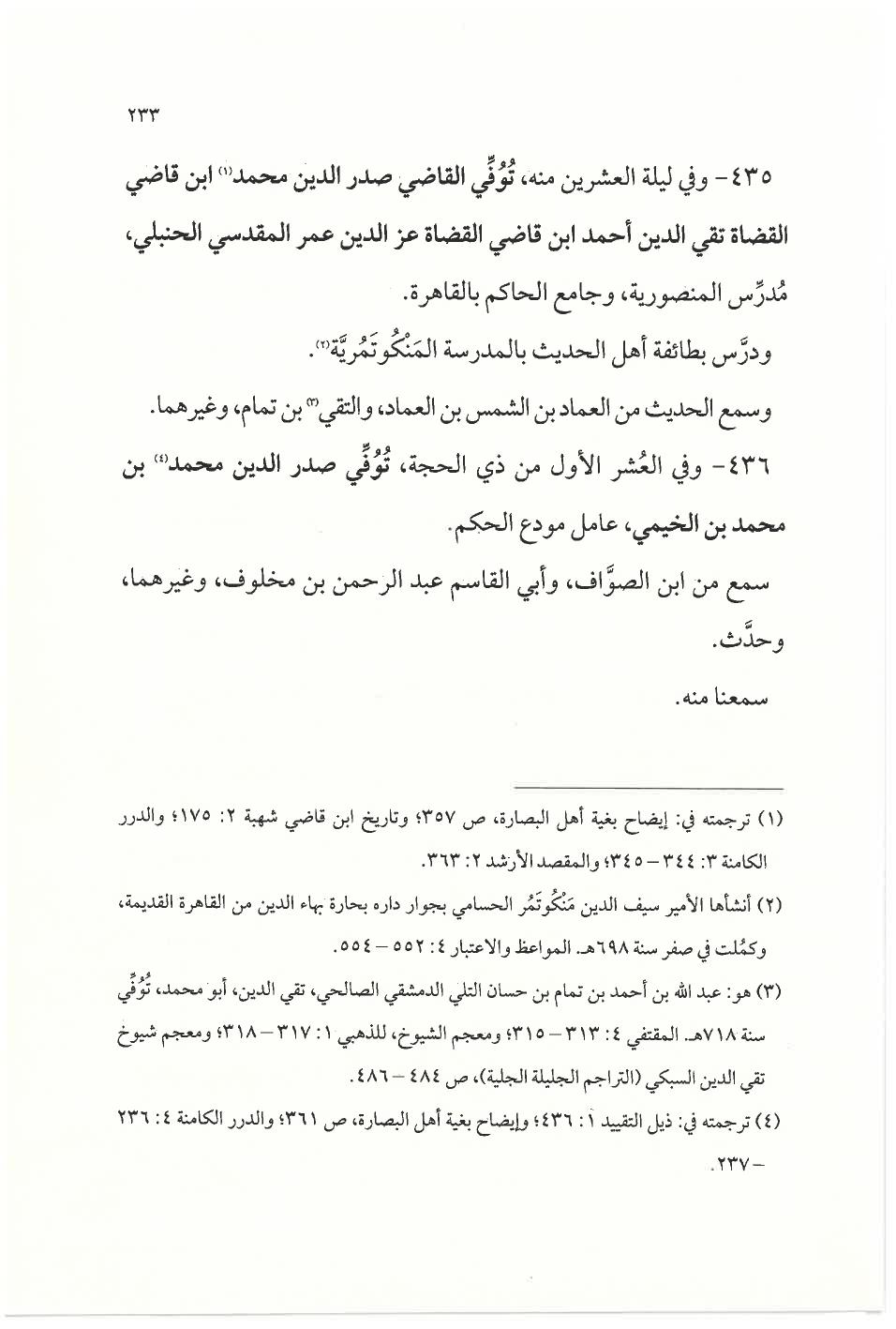٤٣٦ - وفي العُشر الأول من ذي الحجة، تُوُفِّي صدر الدين محمد (¬٤) بن محمد بن الخيمي، عامل مودع الحكم.
