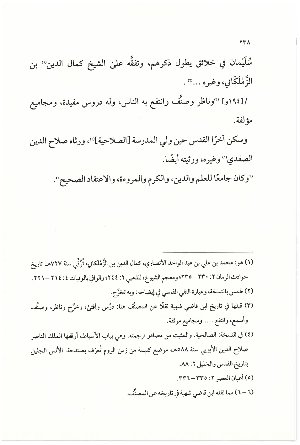 (¬١) هو: محمد بن علي بن عبد الواحد الأنصاري، كمال الدين بن الزَّمْلكاني، تُوُفِّي سنة ٧٢٧ هـ. تاريخ حوادث الزمان ٢: ٢٣٠ - ٢٣٥؛ ومعجم الشيوخ، للذهبي ٢: ٢٤٤؛ والوافي بالوفيات ٤: ٢١٤ - ٢٢١.