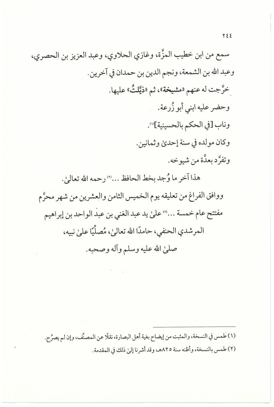 (¬٢) طمس بالنسخة، وأظنُّه سنة ٨٢٥ هـ، وقد أشرنا إلى ذلك في المقدمة.