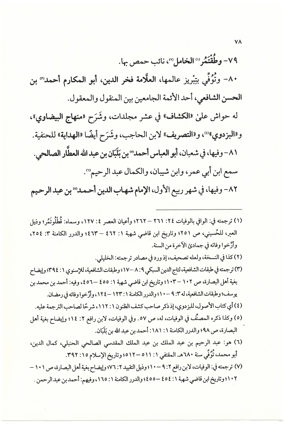 (¬٧) ترجمته في: الوفيات، لابن رافع ٢: ٩ - ١٠؛ وذيل التقييد ٢: ٧٦؛ وإيضاح بغية أهل البصارة، ص ١٠١ - ١٠٢؛ وتاريخ ابن قاضي شهبة ١: ٤٥٤ - ٤٥٥؛ والدرر الكامنة ١: ١٦٥، وفيهم: أحمد بن عبد الرحمن.