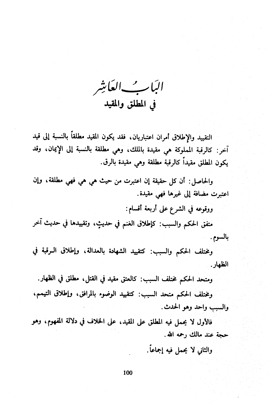 (الْبَابُ الْعَاشِرُ فِي الْمُطْلَقِ وَالْمُقَيَّدِ)