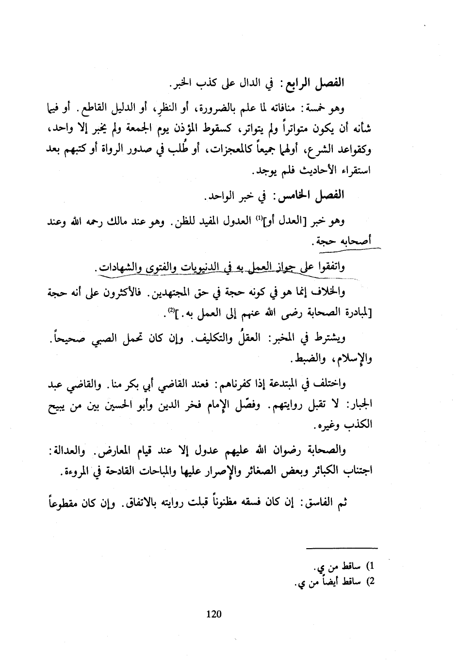 الْفَصْلُ الْخَامِسُ فِي خَبَرِ الْوَاحِدِ