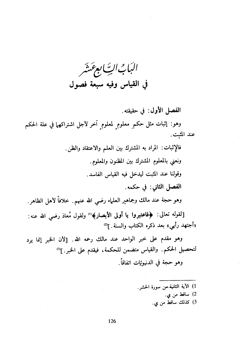 (الْبَابُ السَّابِعَ عَشَرَ فِي الْقِيَاسِ وَفِيهِ سَبْعَةُ فُصُولٍ)