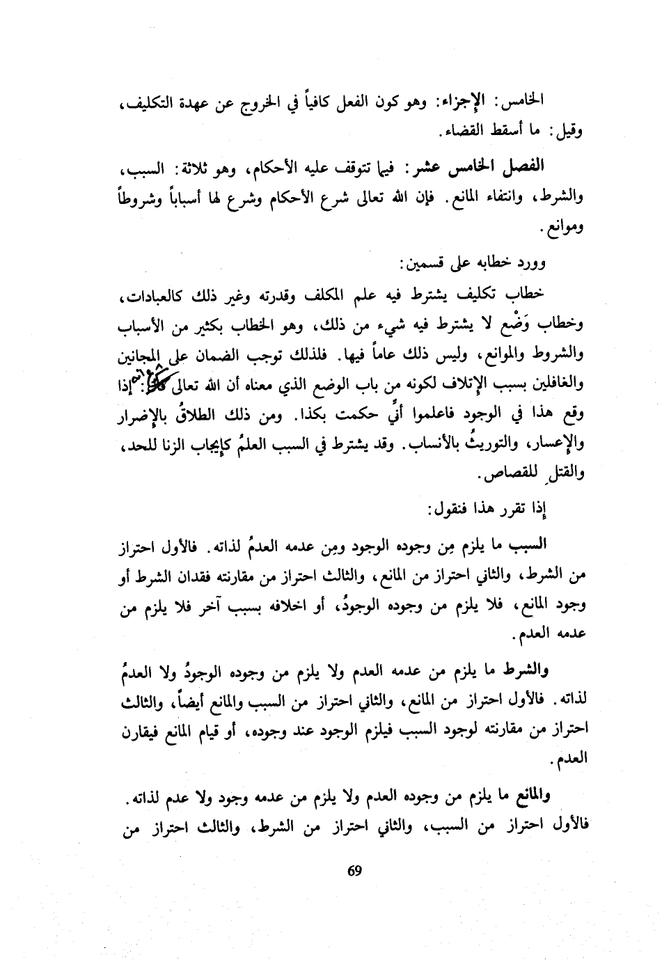 الْفَصْلُ الْخَامِسَ عَشَرَ فِيمَا تَتَوَقَّفُ عَلَيْهِ الْأَحْكَام