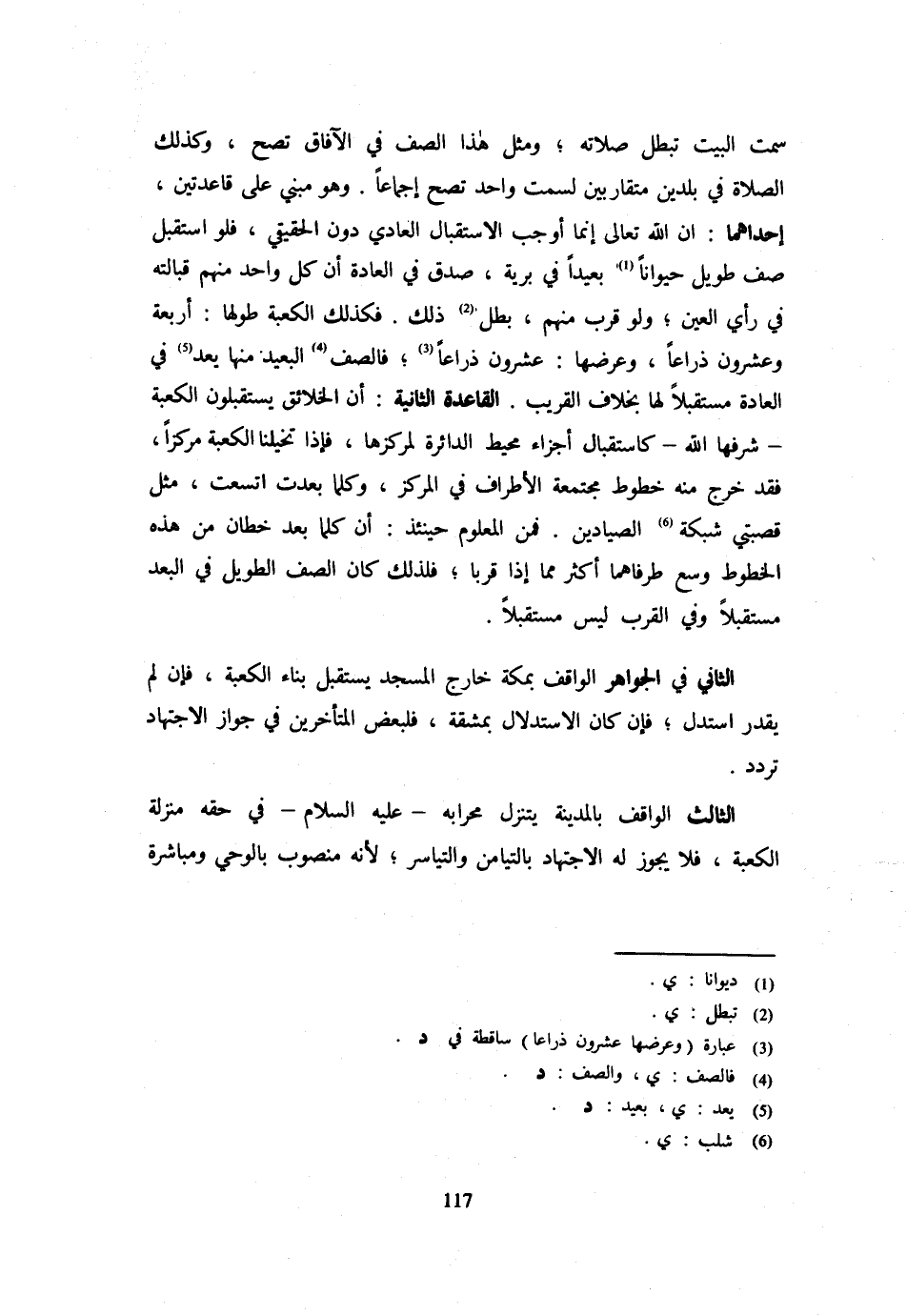 سَمْتِ الْبَيْتِ تَبْطُلُ صَلَاتُهُ وَمِثْلُ هَذَا الصَّفِّ فِي الْآفَاق تصح وَكَذَلِكَ الصَّلَاةُ فِي بَلَدَيْنِ مُتَقَارِبَيْنِ لِسَمْتٍ وَاحِدٍ تَصِحُّ إِجْمَاعًا وَهُوَ مَبْنِيٌّ عَلَى قَاعِدَتَيْنِ إِحْدَاهُمَا أَنَّ اللَّهَ تَعَالَى إِنَّمَا أَوْجَبَ الِاسْتِقْبَالَ الْعَادِيَّ دُونَ الْحَقِيقِيِّ فَلَوِ اسْتَقْبَلَ صَفٌّ طَوِيلٌ حَيَوَانًا بَعِيدًا فِي بَرِّيَّةٍ صَدَقَ فِي الْعَادَةِ أَنَّ كُلَّ وَاحِدٍ مِنْهُمْ قُبَالَتُهُ فِي رَأْيِ الْعَيْنِ وَلَوْ قَرُبَ مِنْهُمْ بَطَلَ ذَلِكَ فَكَذَلِكَ الْكَعْبَةُ طُولُهَا أَرْبَعَةٌ وَعِشْرُونَ ذِرَاعًا وَعَرْضُهَا عِشْرُونَ ذِرَاعًا فَالصَّفُّ الْبَعِيدُ مِنْهَا يُعَدُّ فِي الْعَادَةِ مُسْتَقْبِلًا لَهَا بِخِلَافِ الْقَرِيبِ الْقَاعِدَةُ الثَّانِيَةُ أَنَّ الْخَلَائِقَ يَسْتَقْبِلُونَ الْكَعْبَةَ شَرَّفَهَا اللَّهُ كَاسْتِقْبَالِ أَجْزَاءِ مُحِيطِ الدَّائِرَةِ لِمَرْكَزِهَا فَإِذَا تَخَيَّلْنَا الْكَعْبَةَ مَرْكَزًا فَقَدْ خَرَجَ مِنْهُ خُطُوطٌ مُجْتَمِعَةُ الْأَطْرَافِ فِي الْمَرْكَزِ وَكُلَّمَا بَعُدَتِ اتَّسَعَتْ مِثْلُ قَصَبَتَيْ شَبَكَةِ الصَّيَّادِينَ فَمِنَ الْمَعْلُومِ حِينَئِذٍ أَنَّ كُلَّمَا بَعُدَ خَطَّانِ مِنْ هَذِهِ الْخُطُوطِ وَسِعَ طَرَفَاهُمَا أَكْثَرُ مِمَّا إِذا قربا فَلذَلِك كَانَ الصَّفُّ الطَّوِيلُ فِي الْبُعْدِ مُسْتَقْبِلًا وَفِي الْقُرْبِ لَيْسَ مُسْتَقْبِلًا الثَّانِي فِي الْجَوَاهِرِ الْوَاقِفُ بِمَكَّةَ خَارِجَ الْمَسْجِدِ يَسْتَقْبِلُ بِنَاءَ الْكَعْبَةِ فَإِنْ لَمْ يَقْدِرِ اسْتَدَلَّ فَإِنْ كَانَ الِاسْتِدْلَالُ بِمَشَقَّةٍ فَلِبَعْضِ الْمُتَأَخِّرِينَ فِي جَوَازِ الِاجْتِهَادِ تَرَدُّدٌ الثَّالِثُ الْوَاقِفُ بِالْمَدِينَةِ يَتَنَزَّلُ مِحْرَابُهُ عَلَيْهِ السَّلَامُ فِي حَقِّهِ مَنْزِلَةَ الْكَعْبَةِ فَلَا يَجُوزُ لَهُ الِاجْتِهَادُ بالتيامن والتياسر لِأَنَّهُ مَنْصُوبٌ بِالْوَحْيِ وَمُبَاشَرَةِ