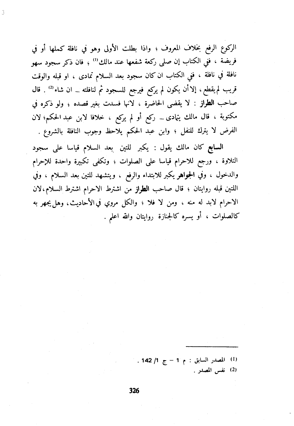 الرُّكُوع الرّفْع بِخِلَاف الْمَعْرُوفُ وَإِذَا بَطَلَتِ الْأُولَى وَهُوَ فِي نَافِلَةٍ كَمَّلَهَا أَوْ فِي فَرِيضَةٍ فَفِي الْكِتَابِ إِنْ صَلَّى رَكْعَةً شَفَعَهَا عِنْدَ مَالِكٍ فَإِنْ ذَكَرَ سُجُودَ سَهْوِ نَافِلَةٍ فِي نَافِلَةٍ فَفِي الْكِتَابِ إِن كَانَ سُجُود بعد السَّلَام تَمَادَى أَوْ قَبْلَهُ وَالْوَقْتُ قَرِيبٌ لَمْ يَقْطَعْ إِلَّا أَنْ يَكُونَ لَمْ يَرْكَعْ فَيَرْجِعُ لِلسُّجُودِ ثُمَّ لِنَافِلَتِهِ إِنْ شَاءَ قَالَ صَاحِبُ الطَّرَّازِ لَا يَقْضِي الْحَاضِرَةَ لِأَنَّهَا فَسَدَتْ بِغَيْرِ قَصْدِهِ وَلَوْ ذَكَرَهُ فِي مَكْتُوبَةٍ قَالَ مَالِكٌ يَتَمَادَى رَكَعَ أَوْ لَمْ يَرْكَعْ خِلَافًا لِابْنِ عَبْدِ الْحَكَمِ لِأَنَّ الْفَرْضَ لَا يُتْرَكُ لِلنَّفْلِ وَابْنُ عَبْدِ الحكم يُلَاحظ وجوب النَّافِلَة بِالشُّرُوعِ السَّابِع كَانَ مَالك يَقُول يكبر لِلَّتَيْنِ بَعْدَ السَّلَامِ قِيَاسًا عَلَى سُجُودِ التِّلَاوَةِ وَرَجَعَ لِلْإِحْرَامِ قِيَاسًا عَلَى الصَّلَوَاتِ وَتَكْفِي تَكْبِيرَةٌ وَاحِدَةٌ لِلْإِحْرَامِ وَالدُّخُولِ وَفِي الْجَوَاهِرِ يُكَبِّرُ لِلِابْتِدَاءِ وَالرَّفْعِ وَيَتَشَهَّدُ لِلَّتَيْنِ بَعْدَ السَّلَامِ وَفِي اللَّتَيْنِ قَبْلَهُ رِوَايَتَانِ قَالَ صَاحِبُ الطَّرَّازِ مَنِ اشْتَرَطَ الْإِحْرَام اشْترط السَّلَام لِأَن الْإِحْرَام لابد لَهُ مِنْهُ وَمَنْ لَا فَلَا وَالْكُلُّ مَرْوِيٌّ فِي الْأَحَادِيثِ وَهَلْ يَجْهَرُ بِهِ كَالصَّلَوَاتِ أَوْ يُسِرُّهُ كَالْجِنَازَةِ رِوَايَتَانِ وَاللَّهُ أَعْلَمُ