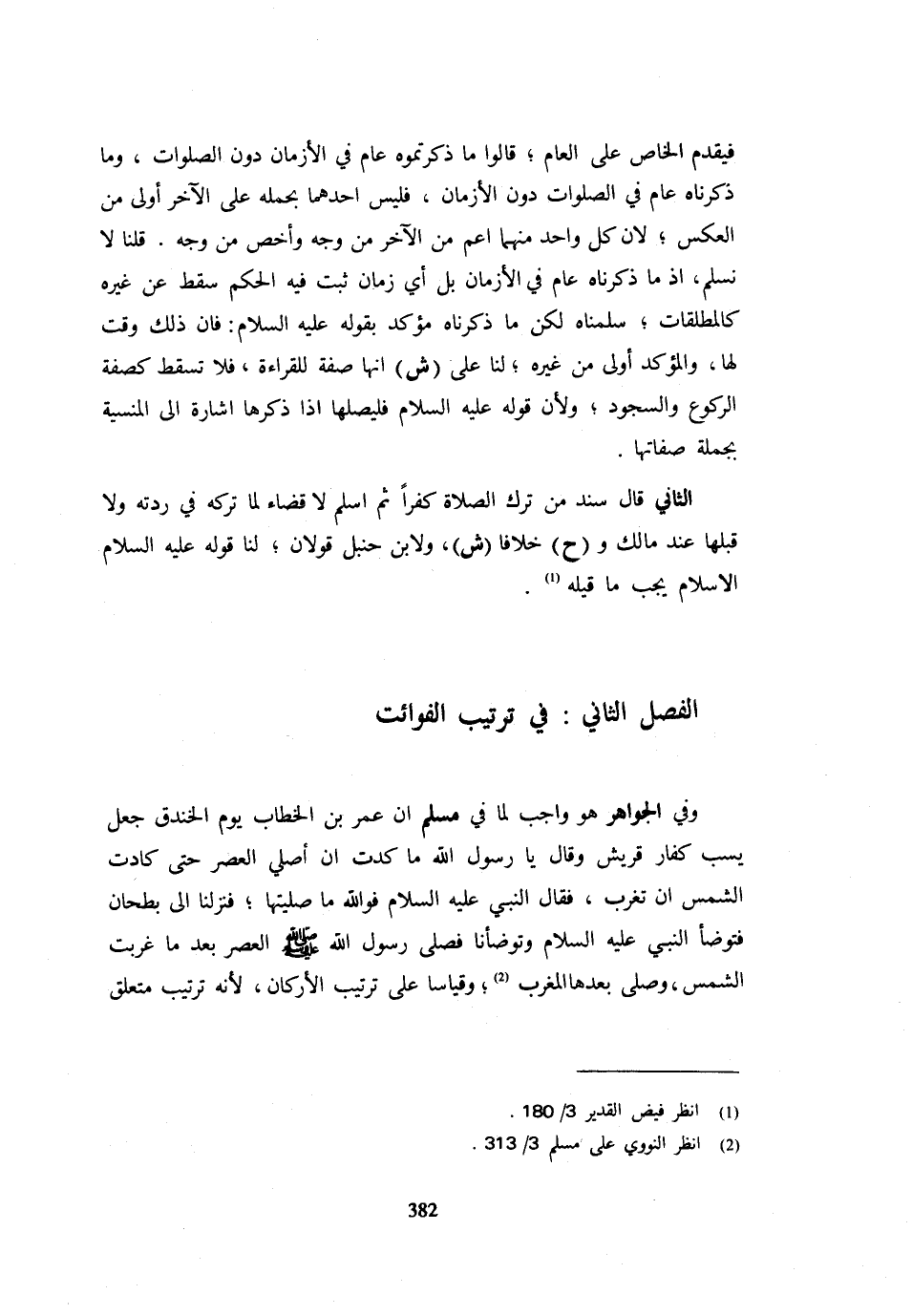 الْفَصْلُ الثَّانِي فِي تَرْتِيبِ الْفَوَائِتِ