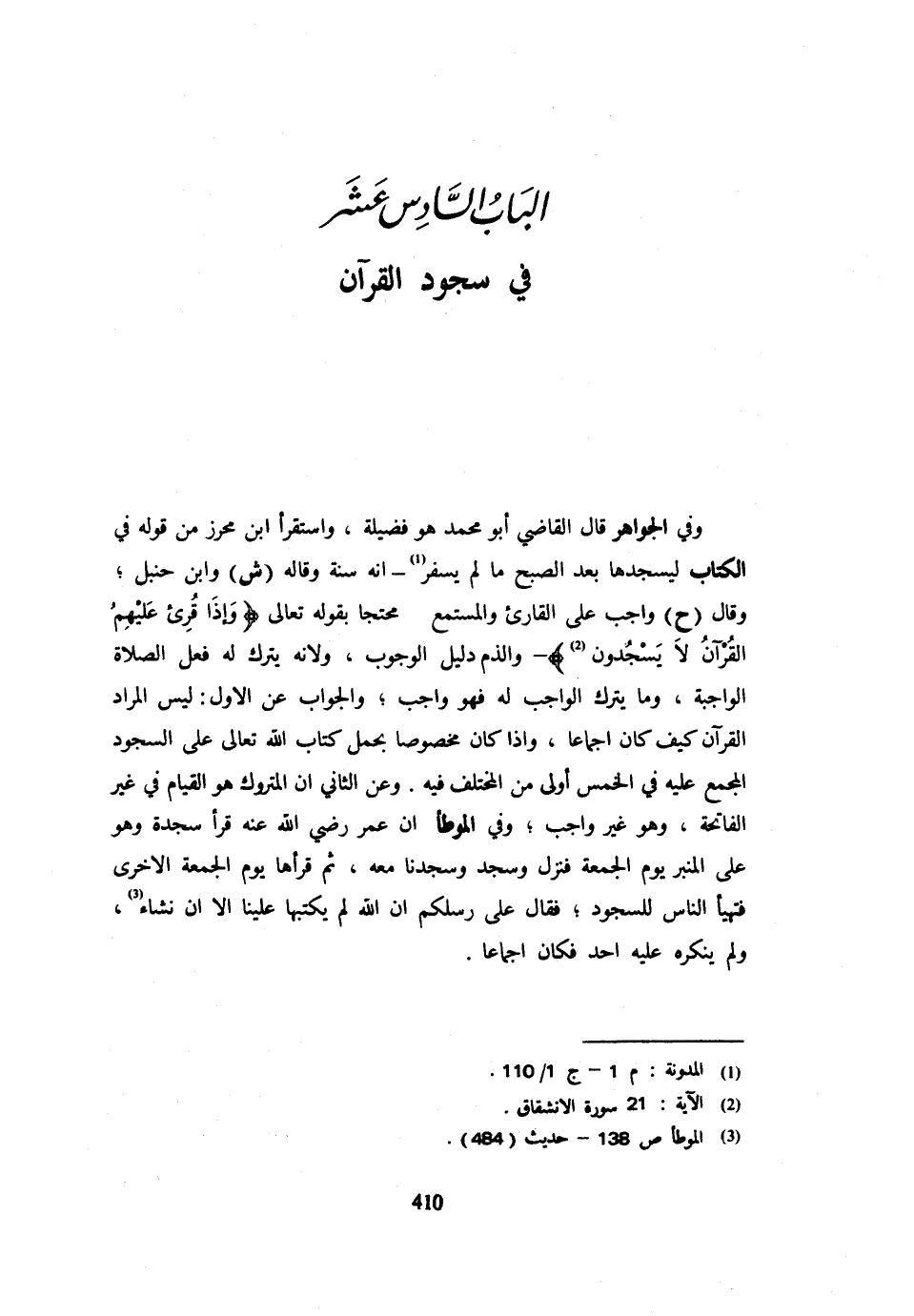 (الْبَابُ السَّادِسَ عَشَرَ فِي سُجُودِ الْقُرْآنِ)