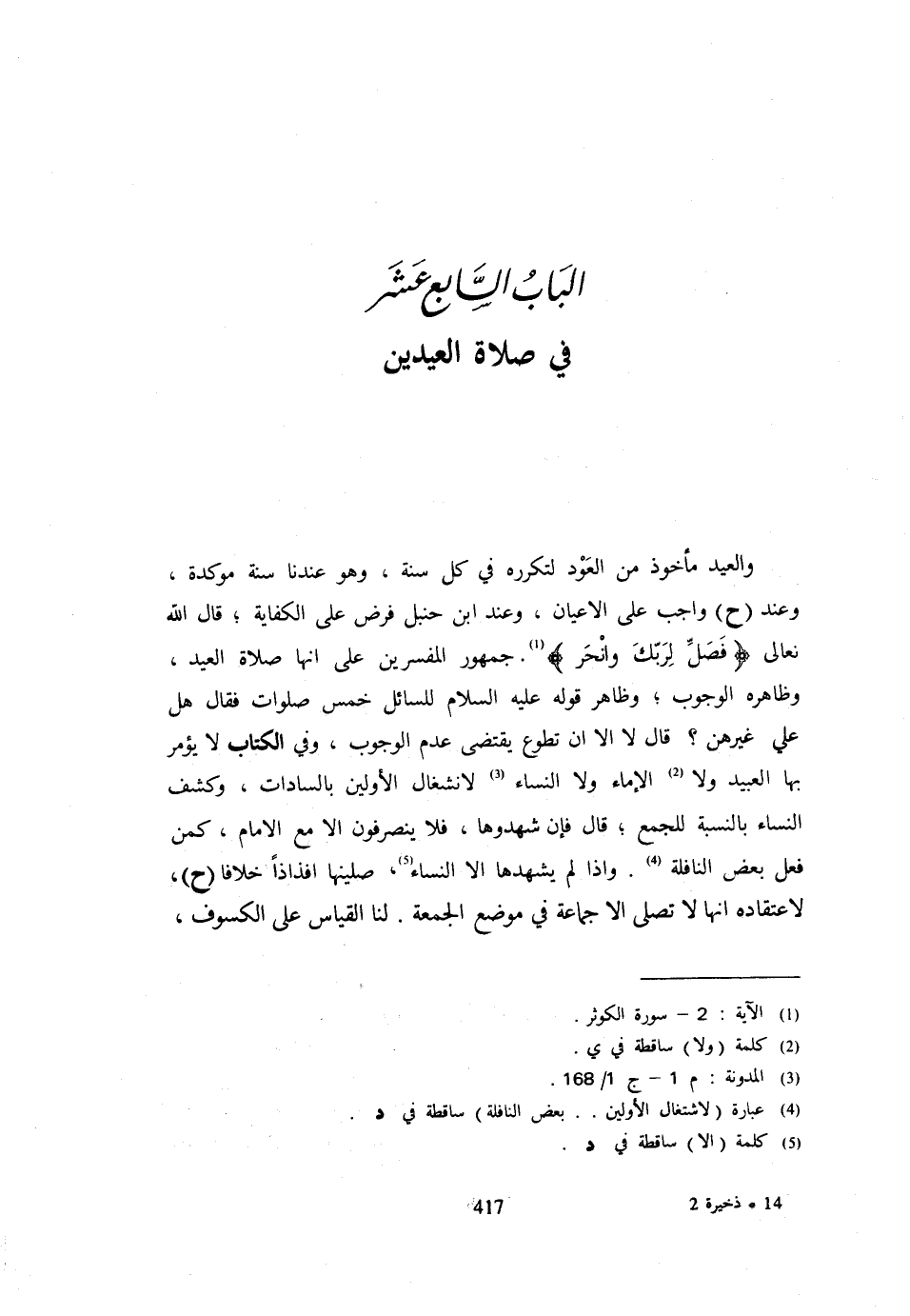 (الْبَاب السَّابِع عشر فِي صَلَاة الْعِيدَيْنِ)