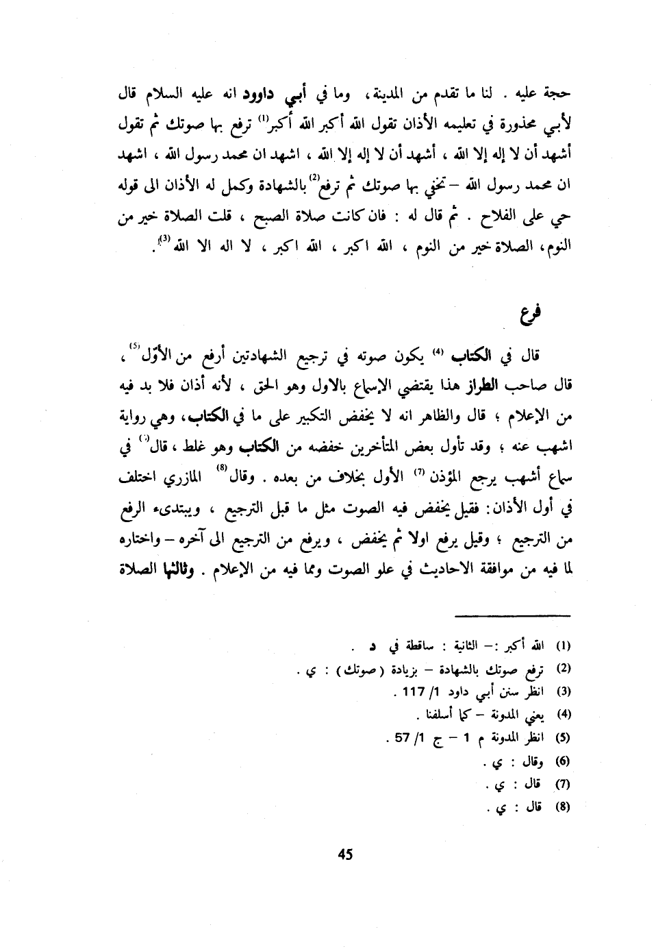 حجَّة عَلَيْهِ لنا مَا تقدم من الْمَدِينَة وَمَا فِي أبي دَاوُود أَنَّهُ عَلَيْهِ السَّلَامُ قَالَ لِأَبِي مَحْذُورَةَ فِي تَعْلِيمِهِ الْأَذَانَ تَقُولُ اللَّهُ أَكْبَرُ اللَّهُ أَكْبَرُ تَرْفَعُ بِهَا صَوْتَكَ ثُمَّ تَقُولُ أَشْهَدُ أَنْ لَا إِلَهَ إِلَّا اللَّهُ أَشْهَدُ أَنْ لَا إِلَه إِلَّا الله أشهد أَن مُحَمَّد رَسُول الله أشهد أَن مُحَمَّد رَسُول الله تخفي بهَا صَوْتك ثمَّ ترفع بِالشَّهَادَةِ وَكَمَّلَ لَهُ الْأَذَانَ إِلَى قَوْلِهِ حَيَّ عَلَى الْفَلَاحِ ثُمَّ قَالَ لَهُ فَإِنْ كَانَتْ صَلَاةُ الصُّبْحِ قُلْتَ الصَّلَاةُ خَيْرٌ مِنَ النَّوْمِ الصَّلَاةُ خَيْرٌ مِنَ النَّوْمِ اللَّهُ أَكْبَرُ اللَّهُ أَكْبَرُ لَا إِلَهَ إِلَّا اللَّهُ