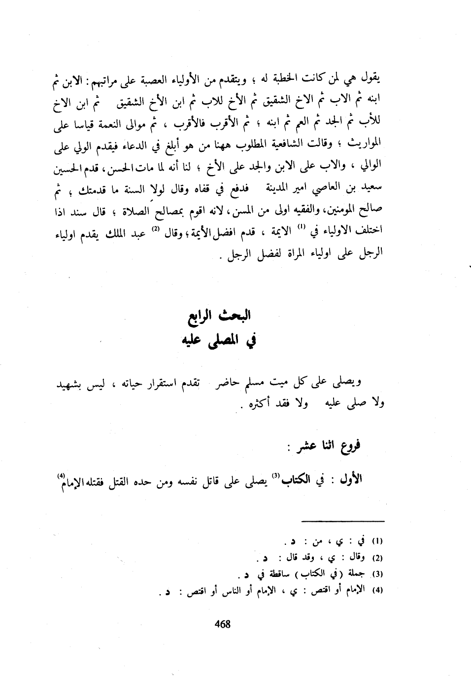 الْبَحْثُ الرَّابِعُ فِي الْمُصَلَّى عَلَيْهِ