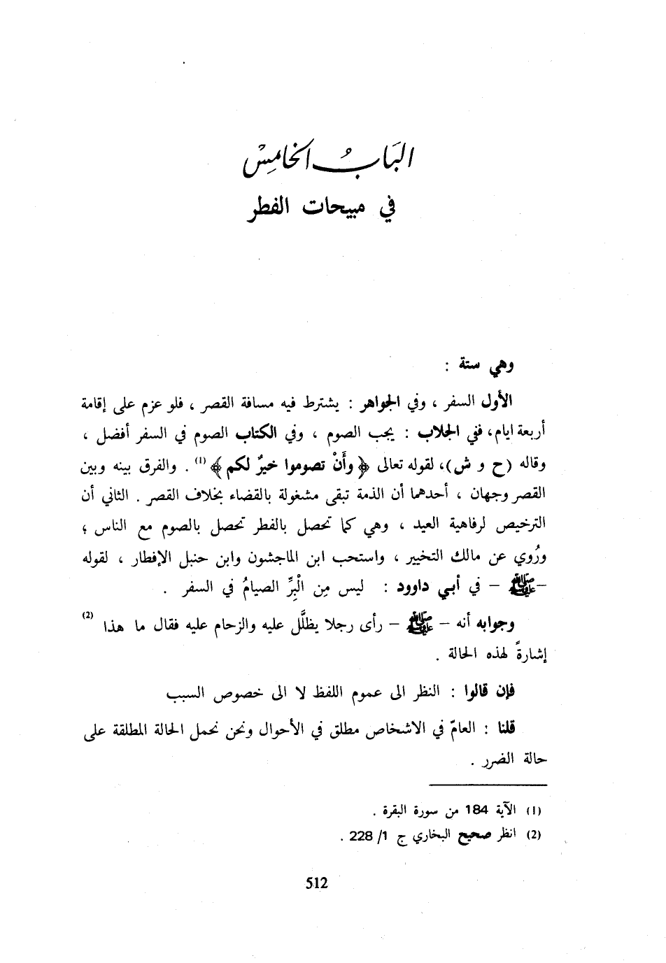 (الْبَابُ الْخَامِسُ فِي مُبِيحَاتِ الْفِطْرِ)