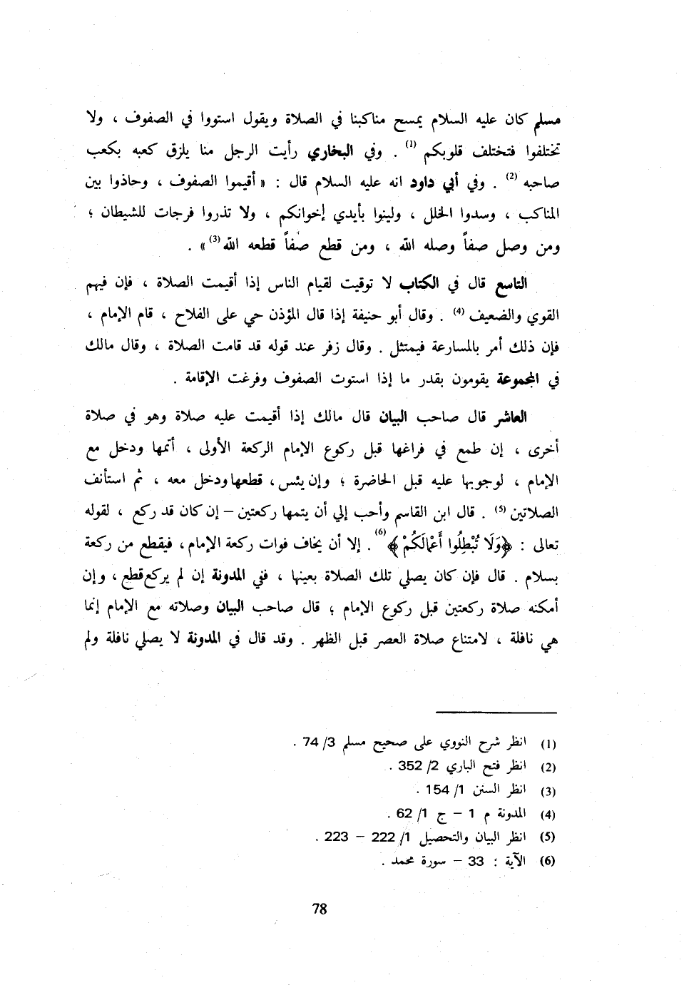 مُسْلِمٍ كَانَ عَلَيْهِ السَّلَامُ يَمْسَحُ مَنَاكِبَنَا فِي الصَّلَاةِ وَيَقُولُ اسْتَوُوا فِي الصُّفُوفِ وَلَا تَخْتَلِفُوا فَتَخْتَلِفَ قُلُوبُكُمْ وَفِي الْبُخَارِيِّ رَأَيْتُ الرَّجُلَ مِنَّا يُلْزِقُ كَعْبَهُ بِكَعْبِ صَاحِبِهِ وَفِي أَبِي دَاوُدَ أَنه عَلَيْهِ السَّلَام قَالَ