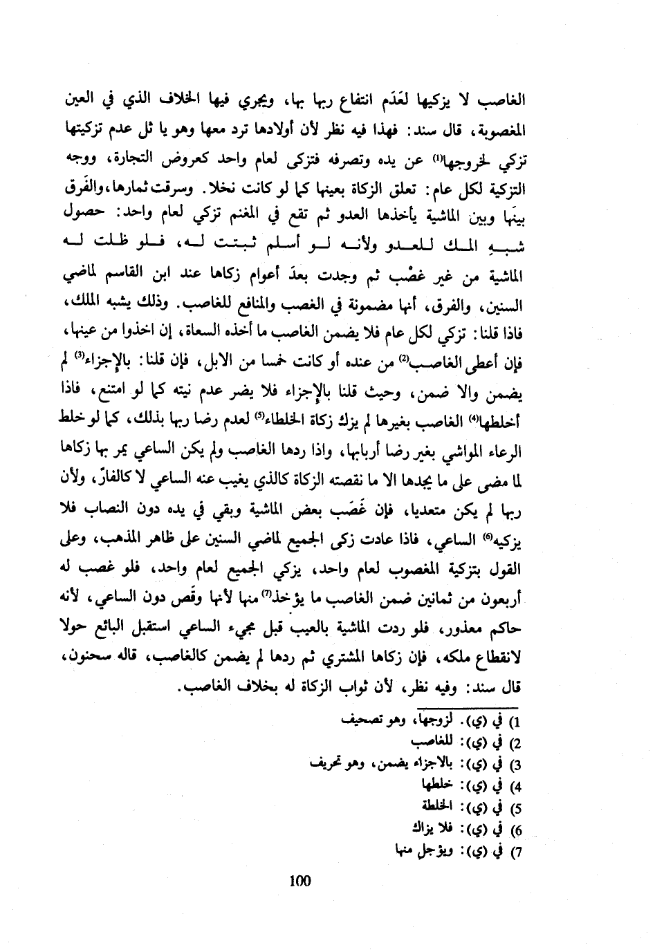 الغاضب لَا يُزَكِّيهَا لِعَدَمِ انْتِفَاعِ رَبِّهَا بِهَا وَيَجْرِي فيا الْخِلَافُ الَّذِي فِي الْعَيْنِ الْمَغْصُوبَةِ قَالَ سَنَدٌ فَهَذَا فِيهِ نظر لِأَن أَوْلَادهَا ترد مَعهَا وَهُوَ يَا ثل عدم تزكيتها تزكي لخروجها على يَده وتصرفه فتزكى على لِعَامٍ وَاحِدٍ كَعُرُوضِ التِّجَارَةِ وَوَجْهُ التَّزْكِيَةِ لِكُلِّ عَامٍ تَعَلُّقُ الزَّكَاةِ بِعَيْنِهَا كَمَا لَوْ كَانَتْ نَخْلَة وسرقت ثمارها وَالْفرق بَينهَا وَبَيْنَ الْمَاشِيَةِ يَأْخُذُهَا الْعَدُوُّ ثُمَّ تَقَعُ فِي الْمغنم تزكّى لعام وَاحِد حُصُول شبه المك لِلْعَدو وَلِأَنَّهُ لَو أسلم تثبتت لَهُ فَلَو ظلت لَهُ الْمَاشِيَةُ مِنْ غَيْرِ غَصْبٍ ثُمَّ وُجِدَتْ بَعْدَ أَعْوَامٍ زَكَّاهَا عِنْدَ ابْنِ الْقَاسِمِ لِمَاضِي السِّنِينَ وَالْفَرْقُ أَنَّهَا مَضْمُونَةٌ فِي الْغَصْبِ وَالْمَنَافِعِ فِي للْغَاصِب وَذَلِكَ يشبه الْملك فَإِذا قُلْنَا تزكي لِكُلِّ عَامٍ فَلَا يَضْمَنُ الْغَاصِبُ مَا أَخَذَهُ السعاة وَإِن أَخَذُوا مِنْ عَيْنِهَا فَإِنْ أَعْطَى الْغَاصِبُ مِنْ عِنْدِهِ أَوْ كَانَتْ خَمْسًا مِنَ الْإِبِلِ فَإِنْ قُلْنَا بِالْإِجْزَاءِ لَمْ يَضْمَنْ وَإِلَّا ضَمِنَ وَحَيْثُ قُلْنَا بِالْإِجْزَاءِ فَلَا يَضُرُّ عَدَمُ نِيَّتِهِ كَمَا لَوِ امْتَنَعَ فَإِذَا أَخْلَطَهَا الْغَاصِبُ بِغَيْرِهَا لَمْ يُزَكِّ زَكَاةَ الْخُلَطَاءِ لِعَدَمِ رِضَا رَبِّهَا بِذَلِكَ كَمَا لَو خلط الراعاء الْمَوَاشِي بِغَيْرِ رِضَا أَرْبَابِهَا وَإِذَا رَدَّهَا الْغَاصِبُ وَلَمْ يَكُنِ السَّاعِي يَمُرُّ بِهَا زَكَّاهَا لِمَا مَضَى عَلَى مَا يَجِدُهَا إِلَّا مَا نَقَصَتْهُ الزَّكَاةُ كَالَّذِي يَغِيبُ عَنْهُ السَّاعِي لَا كَالْفَارِّ وَلِأَن رَبهَا لم يكن معتديا فَإِنْ غَصَبَ بَعْضَ الْمَاشِيَةِ وَبَقِيَ فِي يَدِهِ دُونَ النِّصَابِ فَلَا يُزَكِّيهِ السَّاعِي فَإِذَا عَادَتْ زَكَّى الْجَمِيعَ لِمَاضِي السِّنِينَ عَلَى ظَاهِرِ الْمَذْهَبِ وَعَلَى الْقَوْلِ بِتَزْكِيَةِ الْمَغْصُوبِ لِعَامٍ وَاحِدٍ يُزَكِّي الْجَمِيعَ لِعَامٍ وَاحِدٍ فَلَوْ غُصِبَ لَهُ أَرْبَعُونَ مِنْ ثَمَانِينَ ضِمْنَ الْغَاصِبُ مَا يُؤْخَذُ مِنْهَا لِأَنَّهَا وَقَصٌ دُونَ السَّاعِي لِأَنَّهُ حَاكِمٌ مَعْذُورٌ فَلَوْ رُدَّتِ الْمَاشِيَةُ بِالْعَيْبِ قَبْلَ مَجِيءِ السَّاعِي اسْتَقْبَلَ الْبَائِعُ حَوْلًا لِانْقِطَاعِ مِلْكِهِ فَإِنْ زَكَّاهَا الْمُشْتَرِي ثُمَّ رَدَّهَا لَمْ يَضْمَنْ كَالْغَاصِبِ قَالَهُ سَحْنُونٌ قَالَ سَنَدٌ وَفِيهِ نَظَرٌ لِأَنَّ ثَوَابَ الزَّكَاة لَهُ خلاف الْغَاصِب