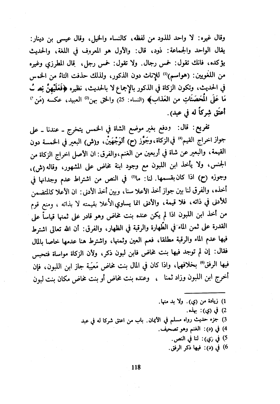 وَقَالَ غَيْرُهُ لَا وَاحِدَ لِلذَّوْدِ مِنْ لَفْظِهِ كَالنِّسَاءِ وَالْخَيْلِ وَقَالَ عِيسَى بْنُ دِينَارٍ يُقَالُ الْوَاحِدُ وَالْجَمَاعَةُ ذَوْدٌ قَالَ وَالْأَوَّلُ هُوَ الْمَعْرُوفُ فِي اللُّغَة والْحَدِيث يؤكده فانك تَقول خمس رجال وَلَا تَقول خمس رجل قَالَ المطرزي وَغَيره من اللغويين هُوَ اسْم لِلْإِنَاثِ دُونَ الذُّكُورِ وَلِذَلِكَ حُذِفَتِ التَّاءُ مِنَ الْخَمْسِ فِي الْحَدِيثِ وَتَكُونُ الزَّكَاةُ فِي الذُّكُورِ بِالْإِجْمَاعِ لَا بِالْحَدِيثِ نَظِيرُهُ {فَعَلَيْهِنَّ نِصْفُ مَا عَلَى الْمُحْصَنَاتِ مِنَ الْعَذَابِ} النِّسَاء 25 وَأَلْحَقَ بِهِنَّ الْعَبِيدَ عَكْسُهُ مَنْ أَعْتَقَ شِرْكًا لَهُ فِي عبد تَفْرِيع قَالَ وَدفع بِغَيْر مَوضِع الشَّاة فِي الْخُمْسِ يَتَخَرَّجُ عِنْدَنَا عَلَى جَوَازِ إِخْرَاجِ الْقيم فِي الزَّكَاة وَجوز ح الْوَجْهَيْنِ وش الْبَعِير فِي الْخَمْسَة دُونَ الْقِيمَةِ وَالْبَعِيرُ عَنْ شَاةٍ فِي أَرْبَعِينَ مِنَ الْغَنَمِ وَالْفَرْقُ أَنَّ الْأَصْلَ إِخْرَاجُ الزَّكَاةِ مِنَ الْجِنْسِ وَلَا يَأْخُذُ ابْنَ اللَّبُونِ مَعَ وُجُودِ ابْنَةِ مَخَاضٍ عَلَى الْمَشْهُورِ وَقَالَهُ ش وَجوزهُ ح إِذا كَانَ بقسمها لَنَا مَا فِي النَّصِّ مِنِ اشْتِرَاطِ عَدَمِ وجدانها فِي أجذه وَالْفرق لنا بَين جَوَاز أَخذ الأعلا سنا وَبَين أَخذ الْأَدْنَى أَن الأعلا كالمتضمن للأدنى فِي ذَاتِهِ فَلَا قِيمَةَ وَالْأَدْنَى إِنَّمَا يُسَاوِي الأعلا بِقِيمَتِهِ لَا بِذَاتِهِ وَمَنَعَ قَوْمٌ مِنْ أَخْذِ ابْنِ اللَّبُونِ إِذَا لَمْ يَكُنْ عِنْدَهُ بِنْتُ مَخَاضٍ وَهُوَ قَادِرٌ عَلَى ثَمَنِهَا قِيَاسًا عَلَى الْقُدْرَةِ عَلَى ثَمَنِ الْمَاءِ فِي الطَّهَارَةِ وَالرَّقَبَةِ فِي الظِّهَارِ وَالْفَرْقُ أَنَّ اللَّهَ تَعَالَى اشْتَرَطَ فِيهَا عَدَمَ الْمَاءِ وَالرَّقَبَةِ مُطْلَقًا فَعَمَّ الْعَيْنَ وَثمنهَا وَاشْترط هُنَا عدمهَا خَالِصا بِالْمَالِ فَقَالَ إِن لَمْ تُوجَدْ فِيهَا بِنْتُ مَخَاضٍ فَابْنُ لَبُونٍ ذَكَرٌ وَلِأَنَّ الزَّكَاةَ مُوَاسَاةٌ فَتُحْبَسُ فِيهَا الرِّفْقُ بِخِلَافِهِمَا وَإِذَا كَانَ فِي الْمَالِ بِنْتُ مَخَاضٍ مَعِيبَةٌ جَازَ ابْنُ اللَّبُونِ فَإِنْ أَخْرَجَ ابْنَ اللَّبُونِ وَزَادَ ثَمَنًا وَعِنْدَهُ بِنْتُ مَخَاضٍ أَوْ بِنْتُ مَخَاضٍ مَكَانَ بِنْتِ لَبُونٍ