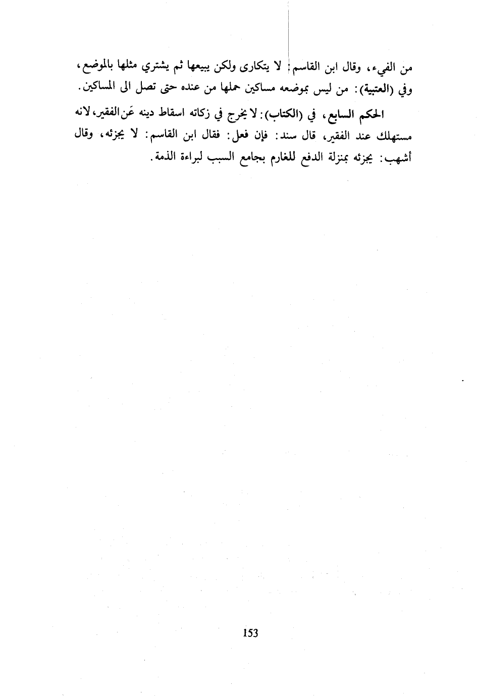 مِنَ الْفَيْءِ وَقَالَ ابْنُ الْقَاسِمِ لَا يَتَكَارَى وَلَكِنْ يَبِيعُهَا ثُمَّ يَشْتَرِي مِثْلَهَا بِالْمَوْضِعِ وَفِي العتبة مَنْ لَيْسَ بِمَوْضِعِهِ مَسَاكِينُ حَمَلَهَا مِنْ عِنْدِهِ ثمَّ تَصِلَ إِلَى الْمَسَاكِينِ الْحُكْمُ السَّابِعُ فِي الْكِتَابِ لَا يخْرِجُ فِي زَكَاتِهِ إِسْقَاطَ دَيْنِهِ عَنِ الْفَقِيرِ لِأَنَّهُ مُسْتَهْلَكٌ عِنْدَ الْفَقِيرِ قَالَ سَنَدٌ فَإِنْ فَعَلَ فَقَالَ ابْنُ الْقَاسِمِ لَا يُجْزِئُهُ وَقَالَ أَشهب يُجزئهُ بِمَنْزِلَةِ الدَّفْعِ لِلْغَارِمِ بِجَامِعِ السَّبَبِ لِبَرَاءَةِ الذِّمَّةِ