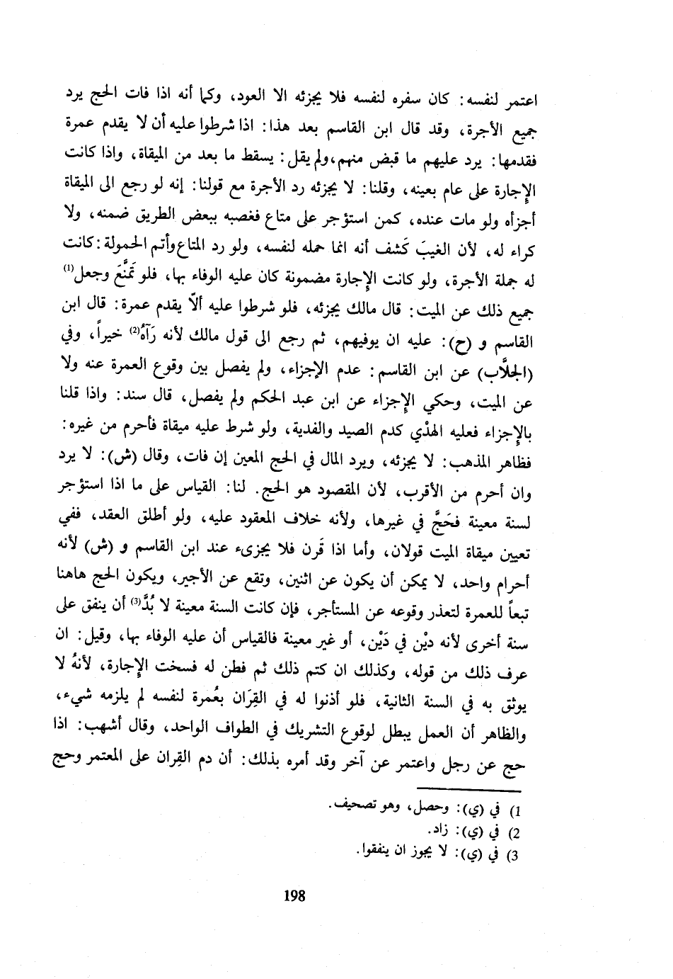 اعْتَمَرَ لِنَفْسِهِ كَانَ سَفَرُهُ لِنَفْسِهِ فَلَا يُجْزِئُهُ إِلَّا الْعُودُ وَكَمَا أَنَّهُ إِذَا فَاتَ الْحَجُّ يَرُدُّ جَمِيعَ الْأُجْرَةِ وَقَدْ قَالَ ابْنُ الْقَاسِمِ بَعْدَ هَذَا إِذَا شَرَطُوا عَلَيْهِ أَنْ لَا يُقَدِّمَ عُمْرَةً فَقَدَّمَهَا يَرُدُّ عَلَيْهِمْ مَا قَبَضَ مِنْهُمْ وَلَمْ يَقُلْ يُسْقِطُ مَا بَعْدُ مِنَ الميقاة وَإِذَا كَانَتِ الْإِجَارَةُ عَلَى عَامٍ بِعَيْنِهِ وَقُلْنَا لَا يُجْزِئُهُ رَدُّ الْأُجْرَةِ مَعَ قَوْلِنَا إِنَّهُ لَو رَجَعَ إِلَى الميقاة أَجْزَأَهُ وَلَوْ مَاتَ عِنْدَهُ كَمَنِ اسْتُؤْجِرَ عَلَى مَتَاعٍ فَغَصَبَهُ بِبَعْضِ الطَّرِيقِ ضَمِنَهُ وَلَا كِرَاءَ لَهُ لِأَنَّ الْغَيْبَ كَشَفَ أَنَّهُ إِنَّمَا حَمَلَهُ لِنَفْسِهِ وَلَوْ رَدَّ الْمَتَاعَ وَأَتَمَّ الْحُمُولَةَ كَانَتْ لَهُ جُمْلَةُ الْأُجْرَةِ وَلَوْ كَانَتِ الْإِجَارَةُ مَضْمُونَةً كَانَ عَلَيْهِ الْوَفَاء بهَا فَلَو تمنع وَجَعَلَ جَمِيعَ ذَلِكَ عَنِ الْمَيِّتِ قَالَ مَالِكٌ يُجْزِئُهُ فَلَوْ شَرَطُوا عَلَيْهِ أَلَّا يُقَدِّمَ عُمْرَةً قَالَ ابْن الْقَاسِم وح عَلَيْهِ أَنْ يُوَفِّيَهُمْ ثُمَّ رَجَعَ إِلَى قَوْلِ مَالِكٍ لِأَنَّهُ رَآهُ خَيْرًا وَفِي الْجُلَّابِ عَنِ ابْنِ الْقَاسِمِ عَدَمُ الْإِجْزَاءِ وَلَمْ يَفْصِلْ بَيْنَ وُقُوعِ الْعُمْرَةِ عَنْهُ وَلَا عَنِ الْمَيِّتِ وَحُكِيَ الْإِجْزَاء عَن ابْن الْحَكَمِ وَلَمْ يَفْصِلْ قَالَ سَنَدٌ وَإِذَا قُلْنَا بِالْإِجْزَاءِ فَعَلَيْهِ الْهَدْيُ كَدَمِ الصَّيْدِ وَالْفِدْيَةُ وَلَوْ شَرط عَلَيْهِ ميقاة فَأَحْرَمَ مِنْ غَيْرِهِ فَظَاهِرُ الْمَذْهَبِ لَا يُجْزِئُهُ وَيُرَدُّ الْمَالُ فِي الْحَجِّ الْمُعَيَّنِ إِنْ فَاتَ وَقَالَ ش لَا يُرَدُّ وَإِنْ أَحْرَمَ مِنَ الْأَقْرَبِ لِأَنَّ الْمَقْصُودَ هُوَ الْحَجُّ لَنَا الْقِيَاسُ عَلَى مَا إِذَا اسْتُؤْجِرَ لِسَنَةٍ مُعَيَّنَةٍ فَحَجَّ فِي غَيْرِهَا وَلِأَنَّهُ خِلَافُ الْمَعْقُودِ عَلَيْهِ وَلَوْ أطلق العقد فَفِي تعْيين ميقاة الْمَيِّتِ قَوْلَانِ وَأَمَّا إِذَا قَرَنَ فَلَا يُجْزِئُ عِنْد ابْن الْقَاسِم وش لِأَنَّهُ أحرم وَاحِدٌ لَا يُمْكِنُ أَنْ يَكُونَ عَنِ اثْنَيْنِ وَتَقَع عَن الْأَجِير وَيكون الْحَج هَا هُنَا تَبَعًا لِلْعُمْرَةِ لِتَعَذُّرِ وُقُوعِهِ عَنِ الْمُسْتَأْجِرِ فَإِنْ كَانَتِ السَّنَةُ مُعَيَّنَةً لَا بُدَّ أَنْ يُنْفِقَ على سنة أُخْرَى لِأَنَّهُ دين فِي دَيْنٌ أَوْ غَيْرَ مُعَيَّنَةٍ فَالْقِيَاسُ أَنَّ عَلَيْهِ الْوَفَاءَ بِهَا وَقِيلَ إِنْ عُرِفَ ذَلِكَ مِنْ قَوْلِهِ وَكَذَلِكَ إِنْ كَتَمَ ذَلِكَ ثُمَّ فَطِنَ لَهُ فُسِخَتِ الْإِجَارَةُ لِأَنَّهُ لَا يُوثَقُ بِهِ فِي السّنة الثَّانِيَة فَلَو أذنوا لَهُ فِي الْقِرَانِ بِعُمْرَةٍ لِنَفْسِهِ لَمْ يَلْزَمْهُ شَيْءٌ وَالظَّاهِرُ أَنَّ الْعَمَلَ يَبْطُلُ لِوُقُوعِ التَّشْرِيكِ فِي الطَّوَافِ الْوَاحِدِ وَقَالَ أَشْهَبُ إِذَا حَجَّ عَنْ رَجُلٍ وَاعْتَمَرَ عَنْ آخِرٍ وَقَدْ أَمَرَهُ بِذَلِكَ أَنَّ دَمَ الْقِرَانِ عَلَى الْمُعْتَمِرِ وَحَجَّ
