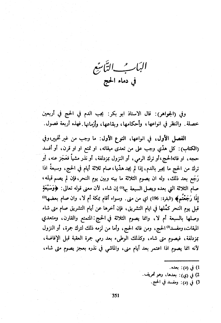 (الْبَابُ التَّاسِعُ فِي دِمَاءِ الْحَجِّ)