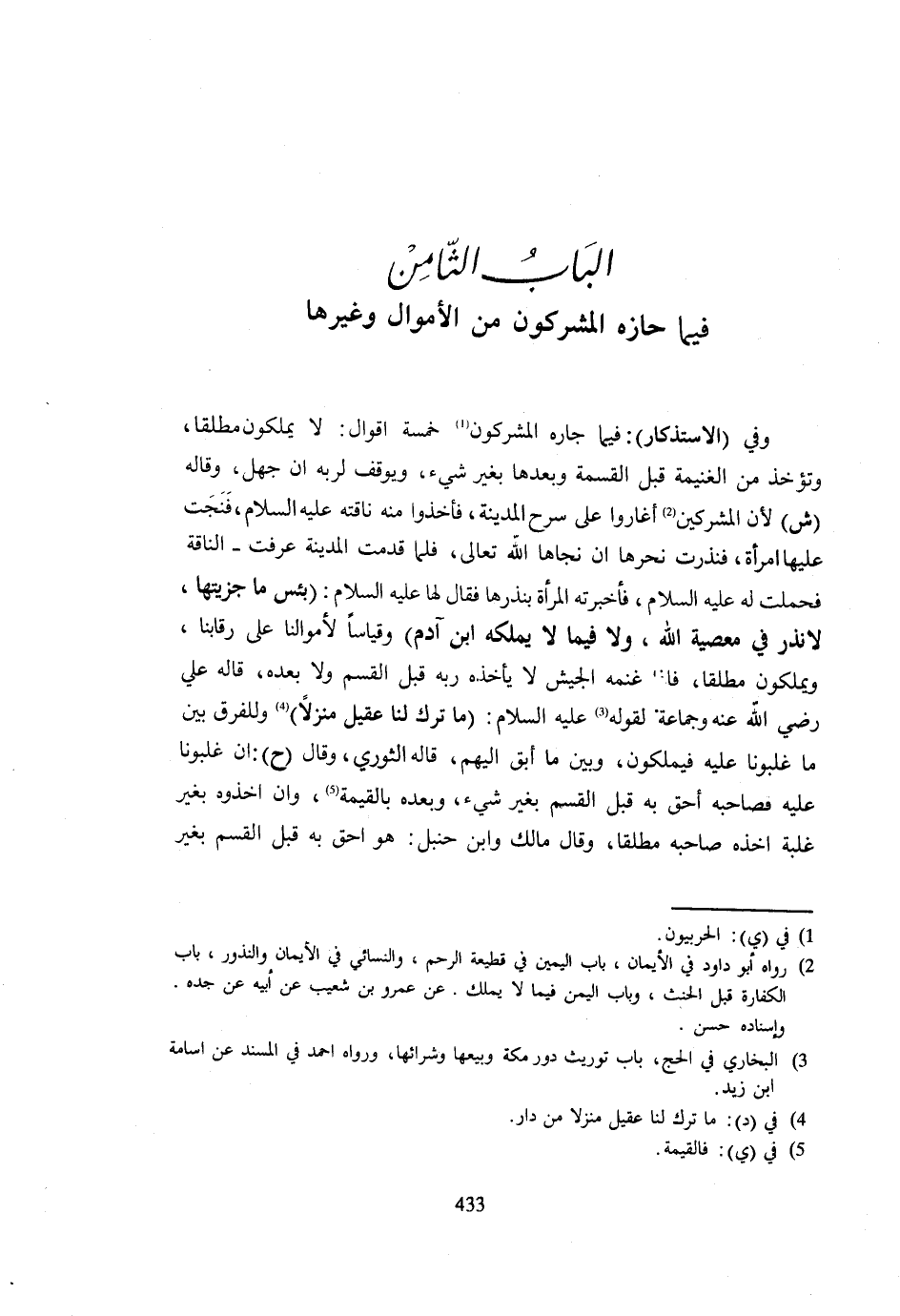 (الْبَابُ الثَّامِنُ فِيمَا حَازَهُ الْمُشْرِكُونَ مِنَ الْأَمْوَالِ وَغَيرهَا)