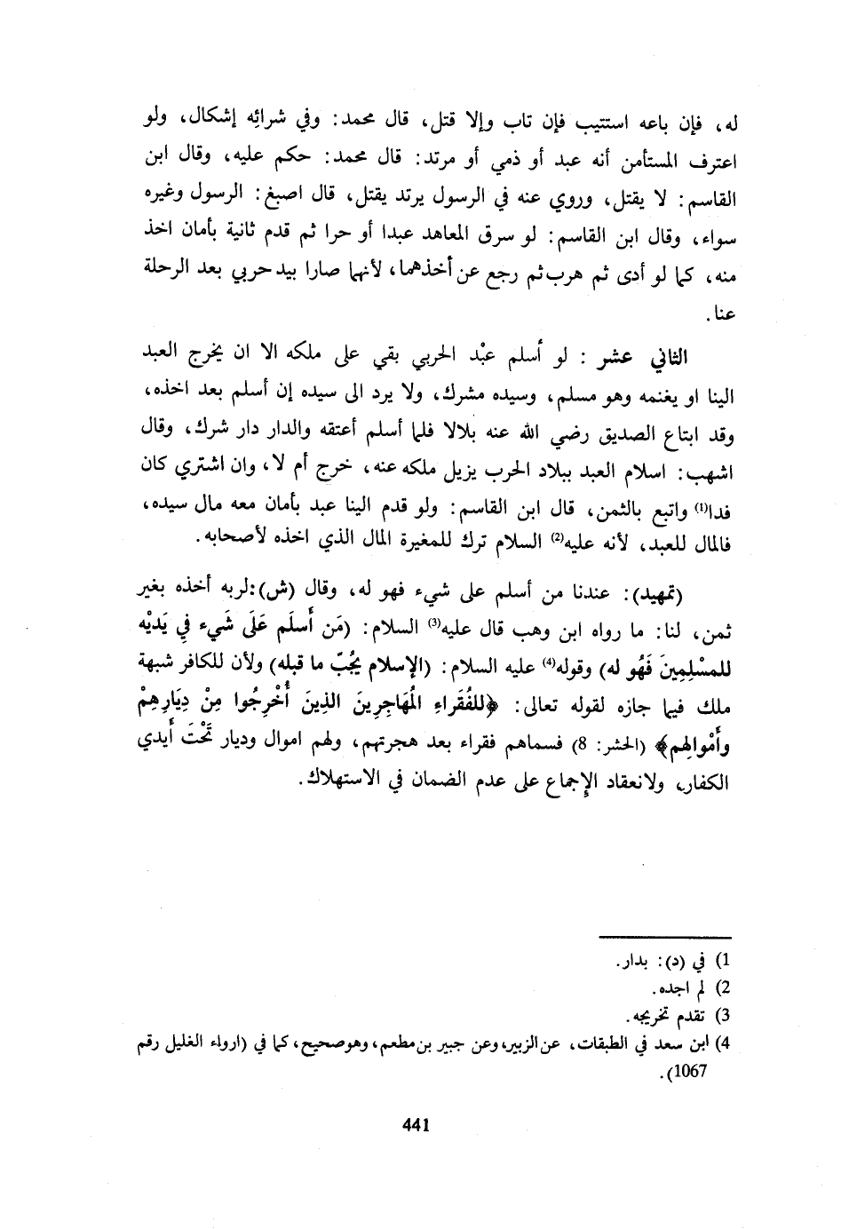 وَقَوله - صَلَّى اللَّهُ عَلَيْهِ وَسَلَّم َ - الْإِسْلَامُ يَجُبُّ مَا قَبْلَهُ وَلِأَنَّ لِلْكَافِرِ شُبْهَةَ ملك فِيمَا جازه لِقَوْلِهِ تَعَالَى {لِلْفُقَرَاءِ الْمُهَاجِرِينَ الَّذِينَ أُخْرِجُوا مِنْ دِيَارِهِمْ وَأَمْوَالِهِمْ} الْحَشْر 8 فَسَمَّاهُمْ فُقَرَاءَ بَعْدَ هِجْرَتِهِمْ وَلَهُمْ أَمْوَالٌ وَدِيَارٌ تَحْتَ أَيْدِي الْكُفَّارِ وَلِانْعِقَادِ الْإِجْمَاع على عدم الضَّمَان فِي الِاسْتِهْلَاك