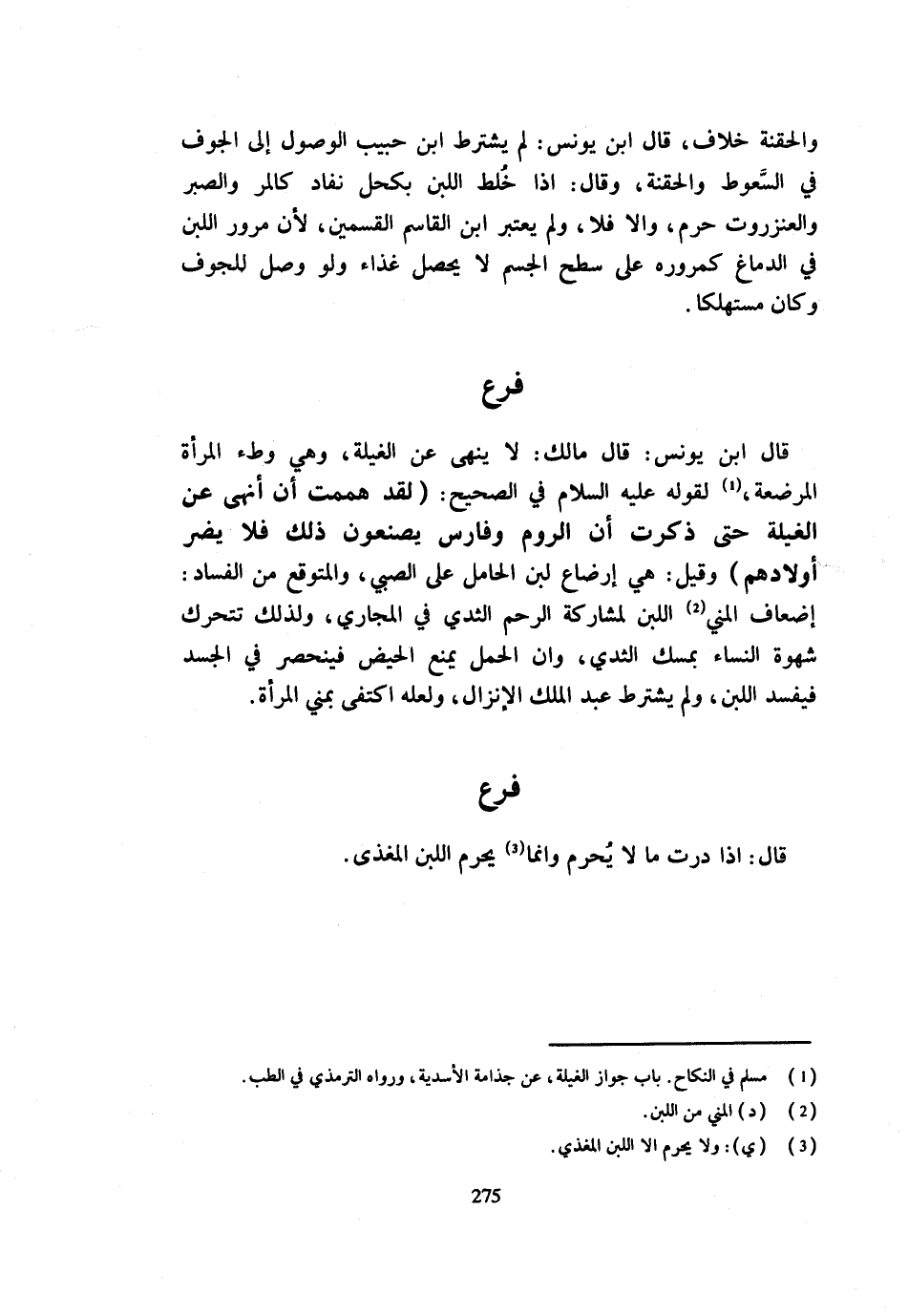وَالْحُقْنَةِ خِلَافٌ قَالَ ابْنُ يُونُسَ لَمْ يَشْتَرِطِ ابْنُ حَبِيبٍ الْوُصُولَ إِلَى الْجَوْفِ فِي السَّعُوطِ والحقنة وَقَالَ إِذا خلط اللَّبن بكحل نَفاذ كَالْمُرِّ وَالصَّبْرِ وَالْعَنْزَرُوتِ حُرِّمَ وَإِلَّا فَلَا وَلَمْ يَعْتَبِرِ ابْنُ الْقَاسِمِ الْقَسَمَيْنِ لِأَنَّ مُرُورَ اللَّبَنِ فِي الدِّمَاغِ كَمُرُورِهِ عَلَى سَطْحِ الْجِسْمِ لَا يَحْصُلُ غِذَاءٌ وَلَوْ وَصَلَ لِلْجَوْفِ وَكَانَ مُسْتَهْلَكًا